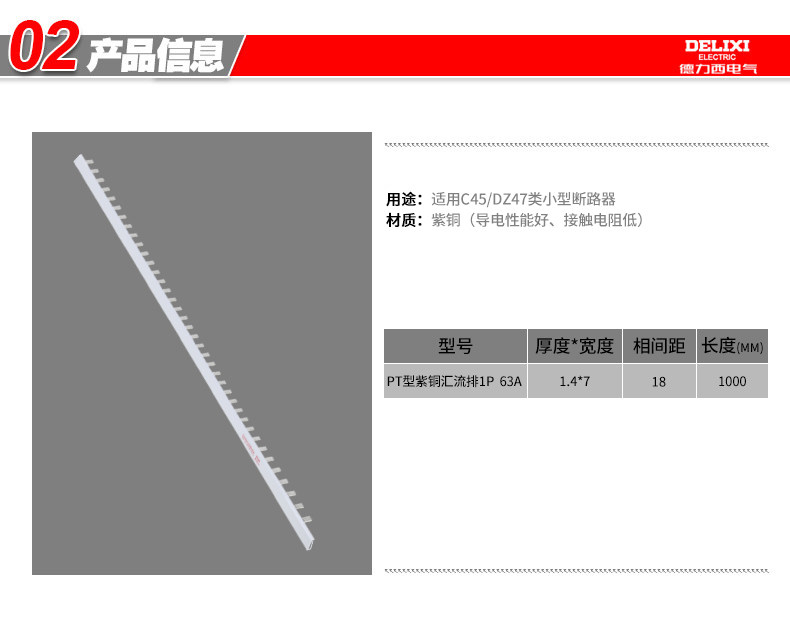 Delixi Busbar Air Switch Tin-Plated Copper Busbar 1P/2P/3P/1P+N Circuit Breaker Dpn Terminal Block