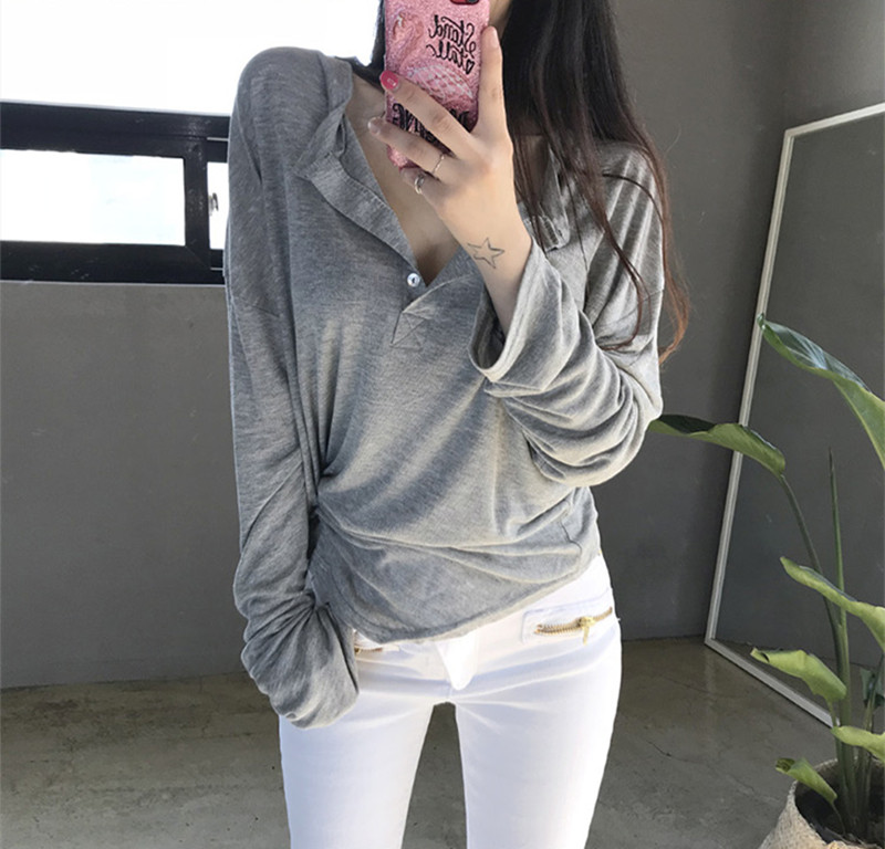 Pure Desire Irregular Button Mid-Length White T-Shirt for Women, Long-Sleeved, New Autumn Style, Loose Sun-Protective Top, Thin