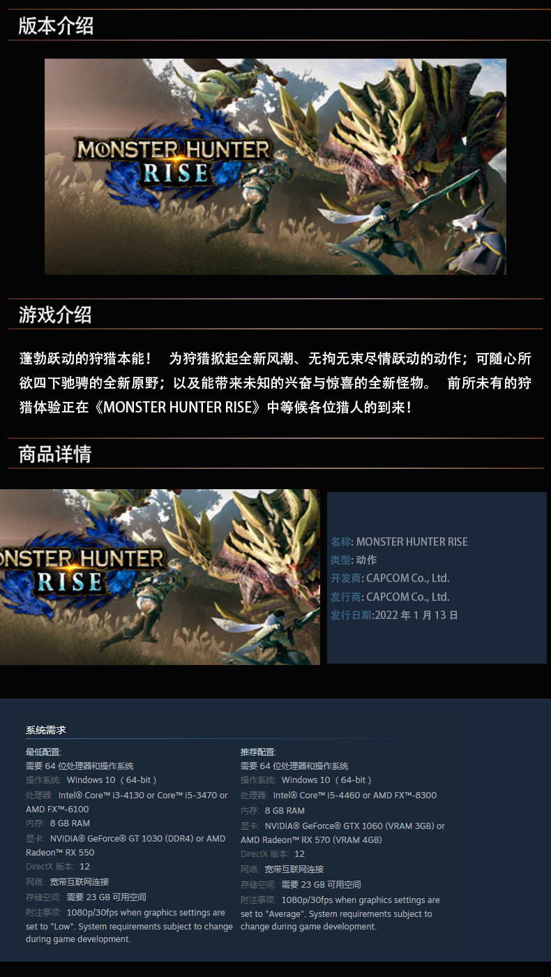Game Name Monster Hunter Rise Steam