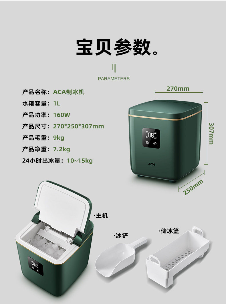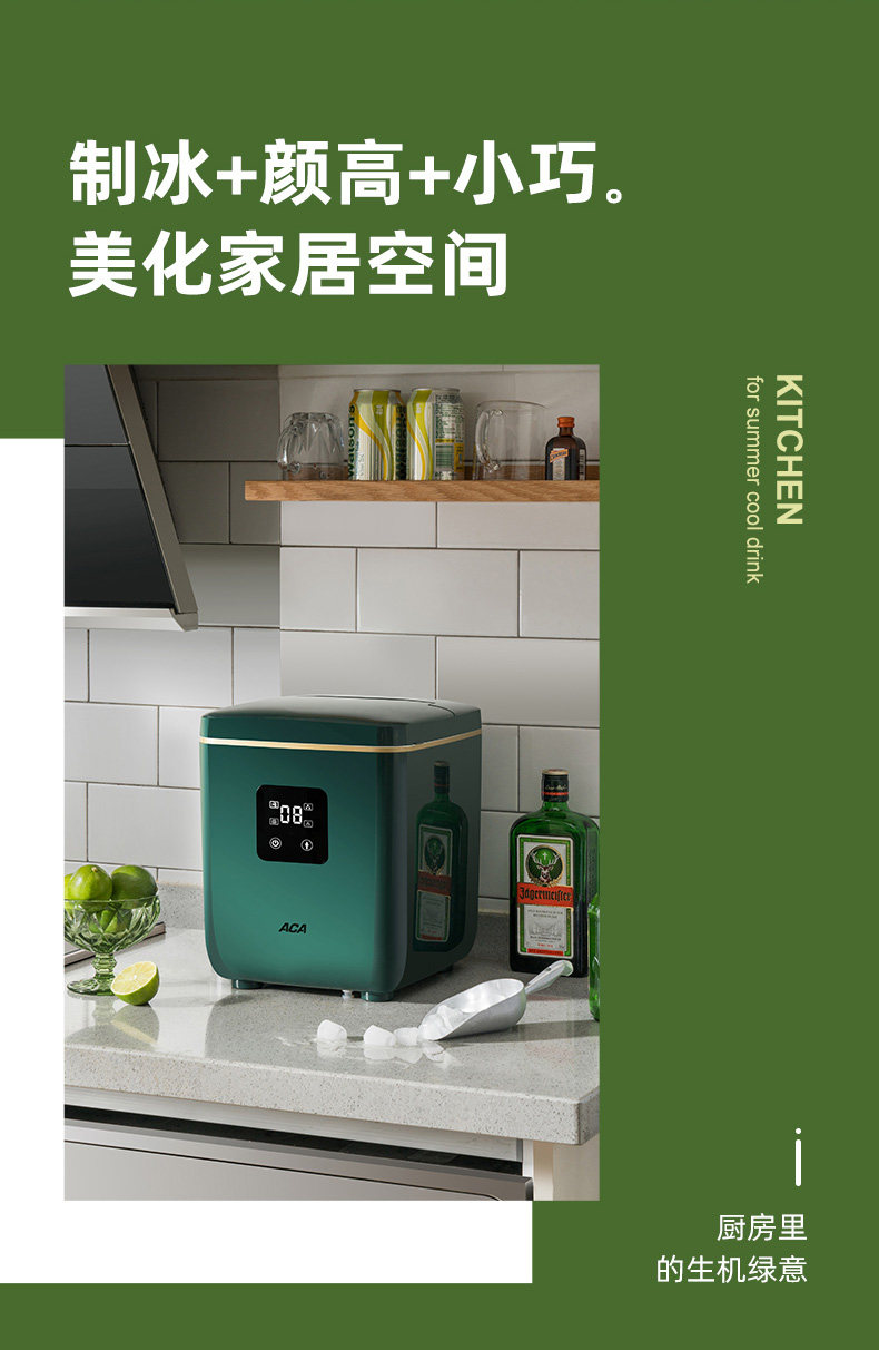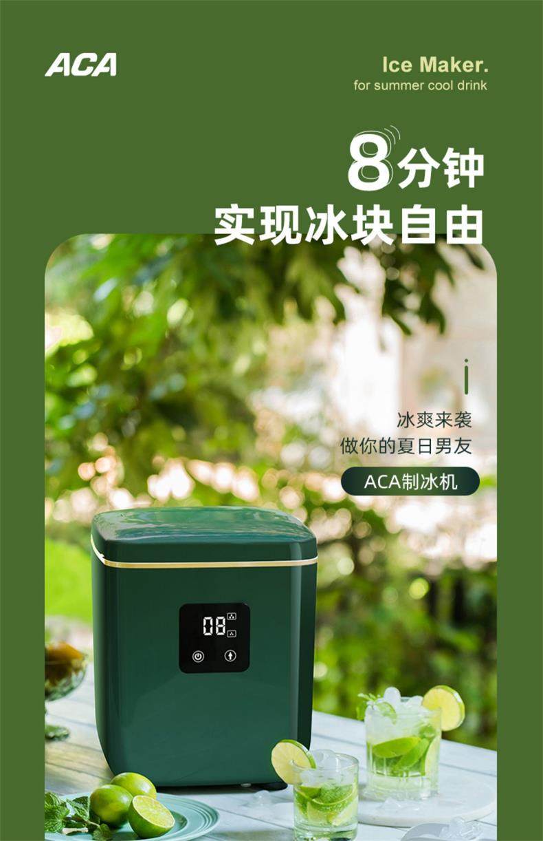 Aca Ice Machine for Home Use, Small Mini Fully Automatic Ice Maker for Bars, Milk Tea Shops, Commercial Round Ice Making Machine