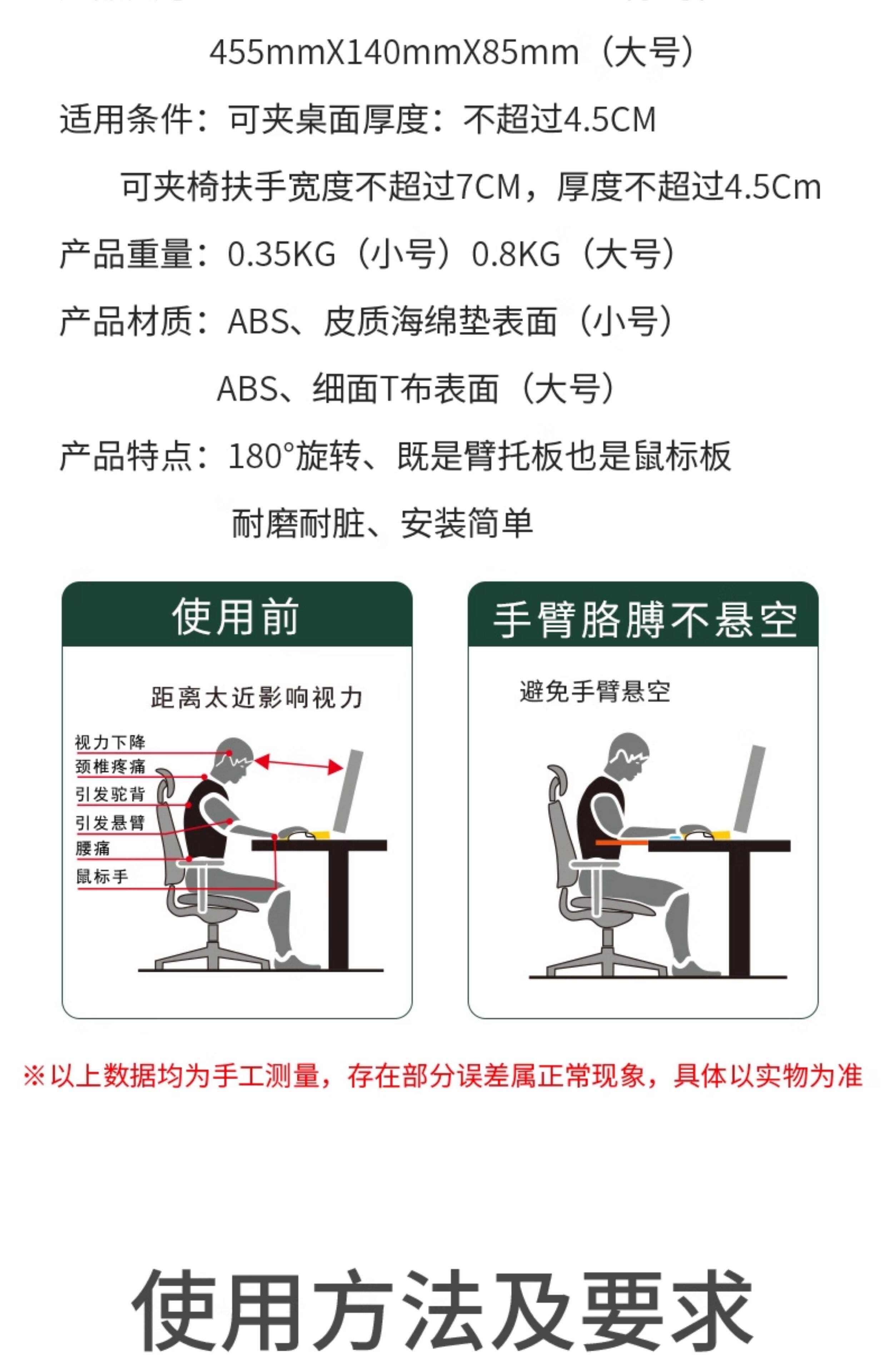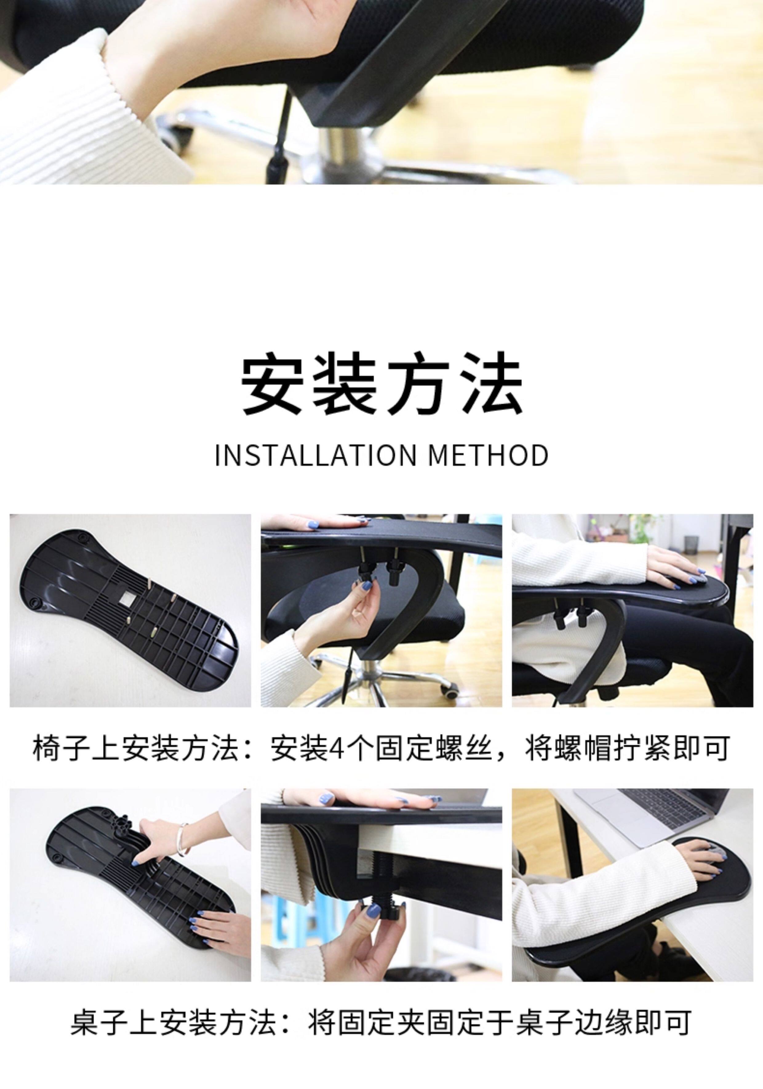 Creative Arm Rest Computer Wrist Rest Chair with Mouse Pad Wrist Support Keyboard Rest Elbow Rest No-Drill Desktop