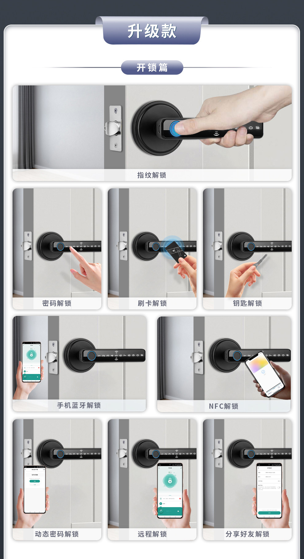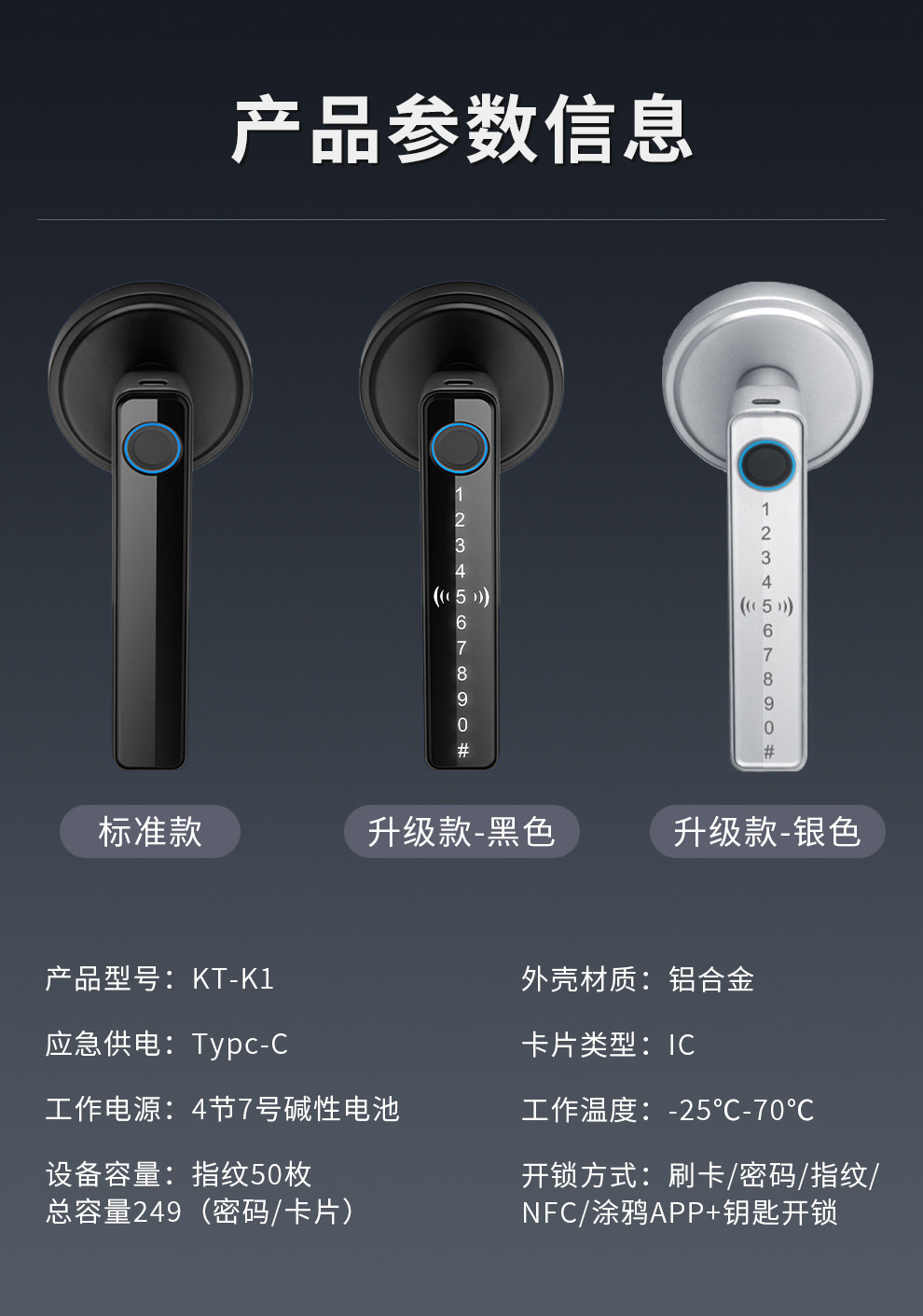Finish Color Black Single Handle - Standard Model - [Fingerprint + Key Unlock],Black Single Handle - Upgraded Version - [Card Swipe + Password + Fingerprint + Nfc + Tuya App + Key Unlock],Silver Single Handle - Upgraded Model - [Swipe Card + Password + Fingerprint + Nfc + Tuya App + Key to Unlock],Basic Model [Complete Set of Single Tongue] (Ball Lock/Single Tongue Lock Replacement),Basic Model [Complete Set of Double Tongues] 50 Margins,Upgraded Model [Complete Set of Single Tongue] (Ball Lock/Single Tongue Lock Replacement),Upgraded Model [Complete Set of Double Tongues - Lift up and Lock] - 50 Margin,Bluetooth Model [Complete Set of Single Tongue] (Ball Lock/Single Tongue Lock Replacement),Bluetooth Model [Complete Set of Double Tongues - Lift up and Lock] - 50 Margins,[Split Lock Replacement] Basic Model - 50 Margin + Decorative Cover,[Complete Replacement of Split Lock] Upgraded Model - 50 Margins + Decorative Cover,[Split Lock Replacement] Bluetooth Model-50 Margin + Decorative Cover,New Graffiti Gateway