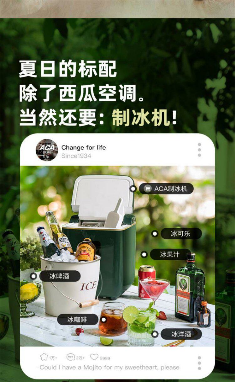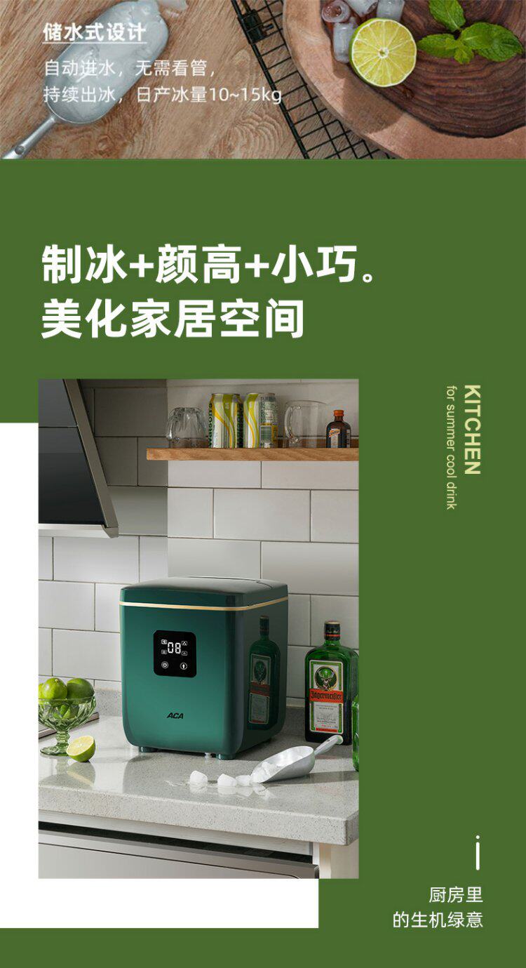 ACA ice making machine household small mini fully automatic ice cube making bar milk tea shop commercial round ice ice making machine