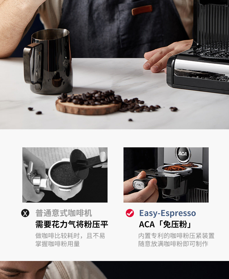 Aca/North American Appliances Ac-E20A Italian-Style Espresso Semi-Automatic Coffee Machine with No-Pressure Powder and Milk Frothing