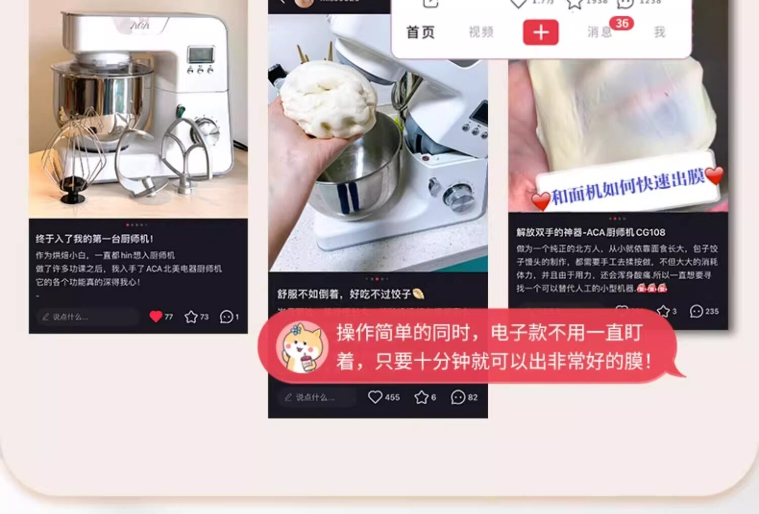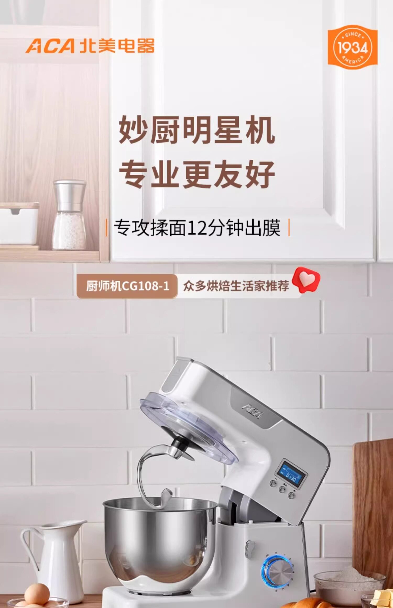 ACA North American Electrical Appliance Chef Machine household multi-functional small dough mixing and kneading dough fully automatic dough mixer