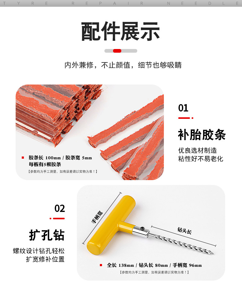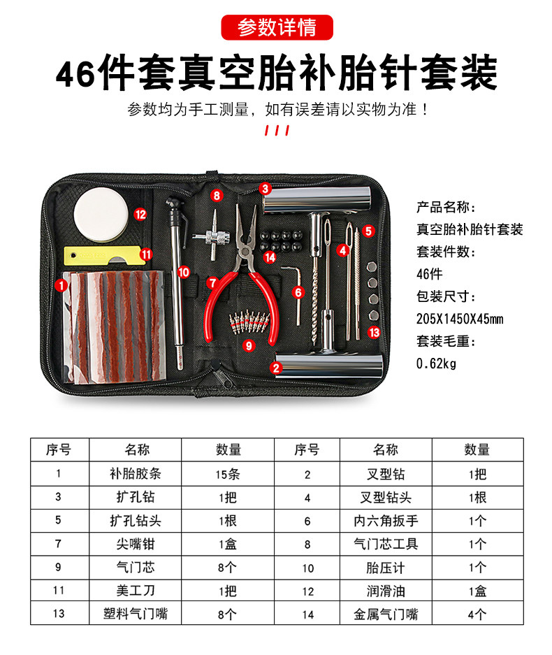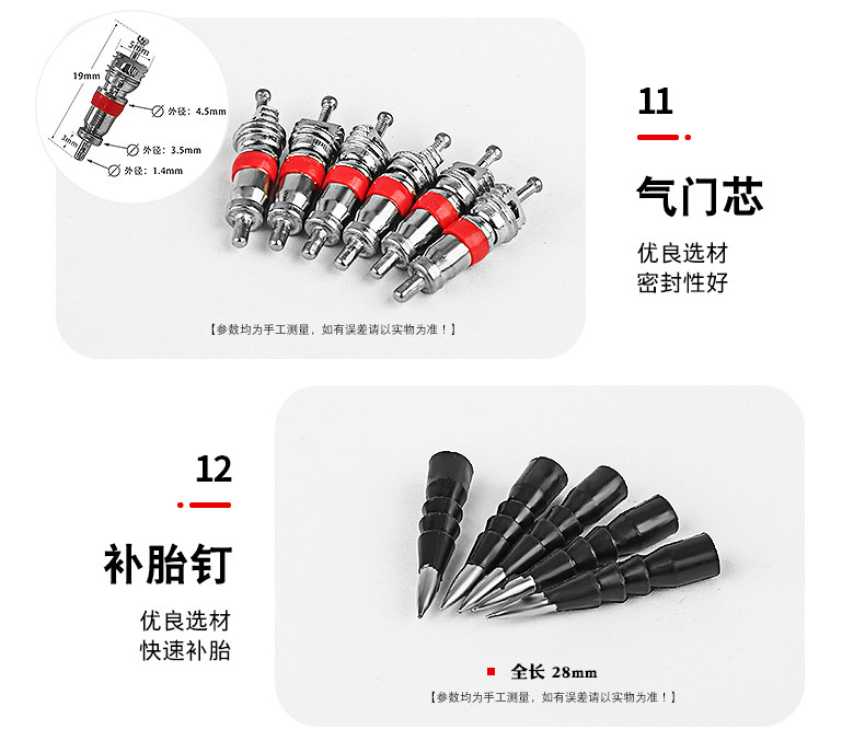 Car Vacuum Tire Repair Needle, Tire Pressure Repair Strip, Valve Cap, Valve Core, Needle Nose Pliers, Emergency Tool Set