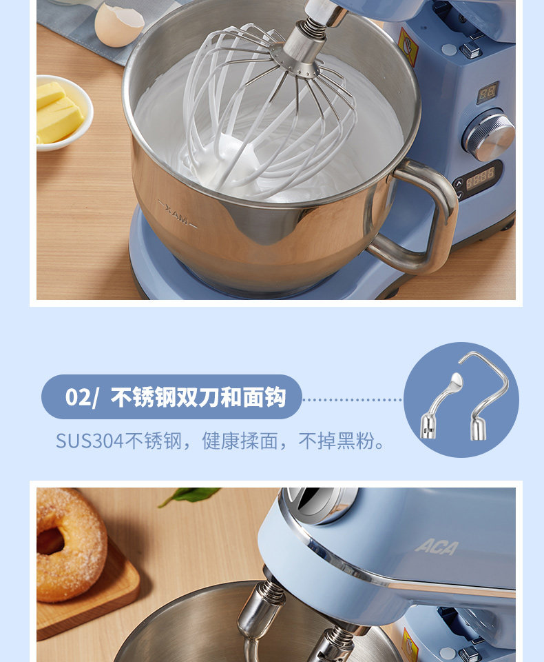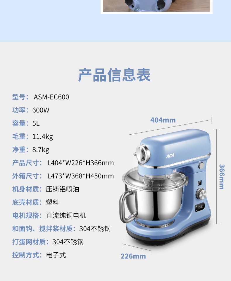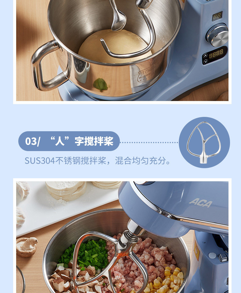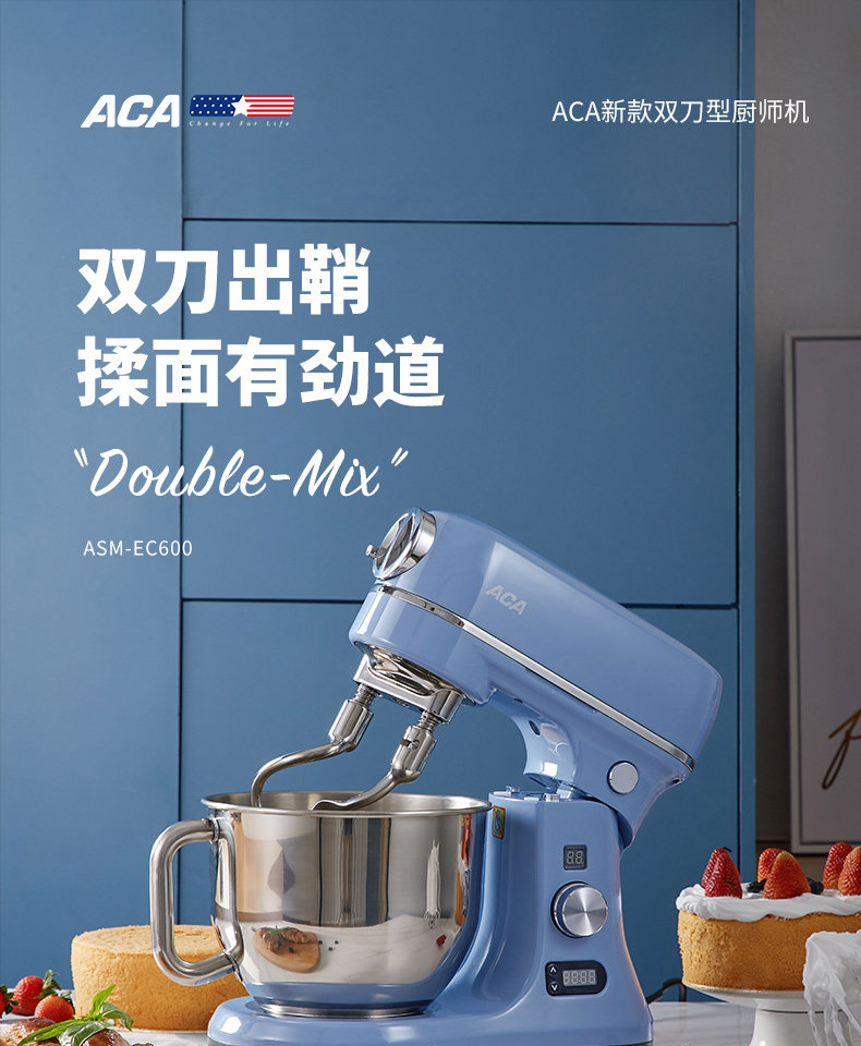 Aca/North American Appliances Ec600 Chef Machine Home Electronic Fully Automatic Dual-Blade Dough Kneading and Egg Beating Machine