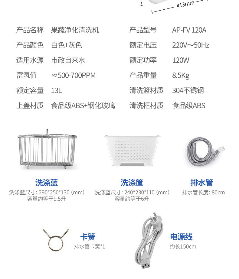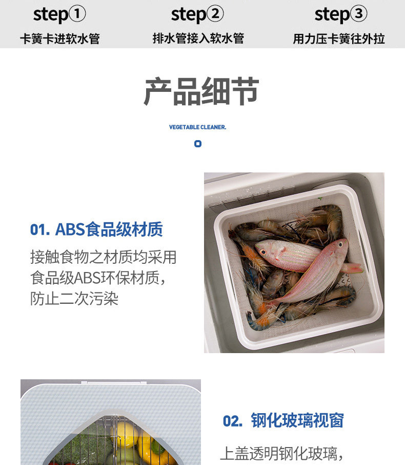 ACA vegetable washing machine household fully automatic fruit and vegetable meat cleaning pesticide residue purification sterilization detoxification food ingredients food sterilizer