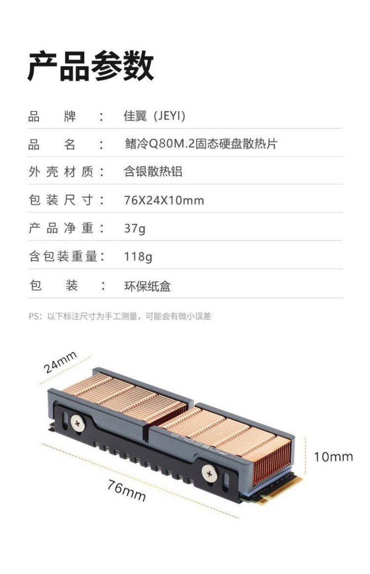 Jeyi/Jiayi Fin Cooler Q150 All-Copper Aluminum Alloy M.2 Solid State Drive Ps5 Computer Radiator Fin Cooler Q80