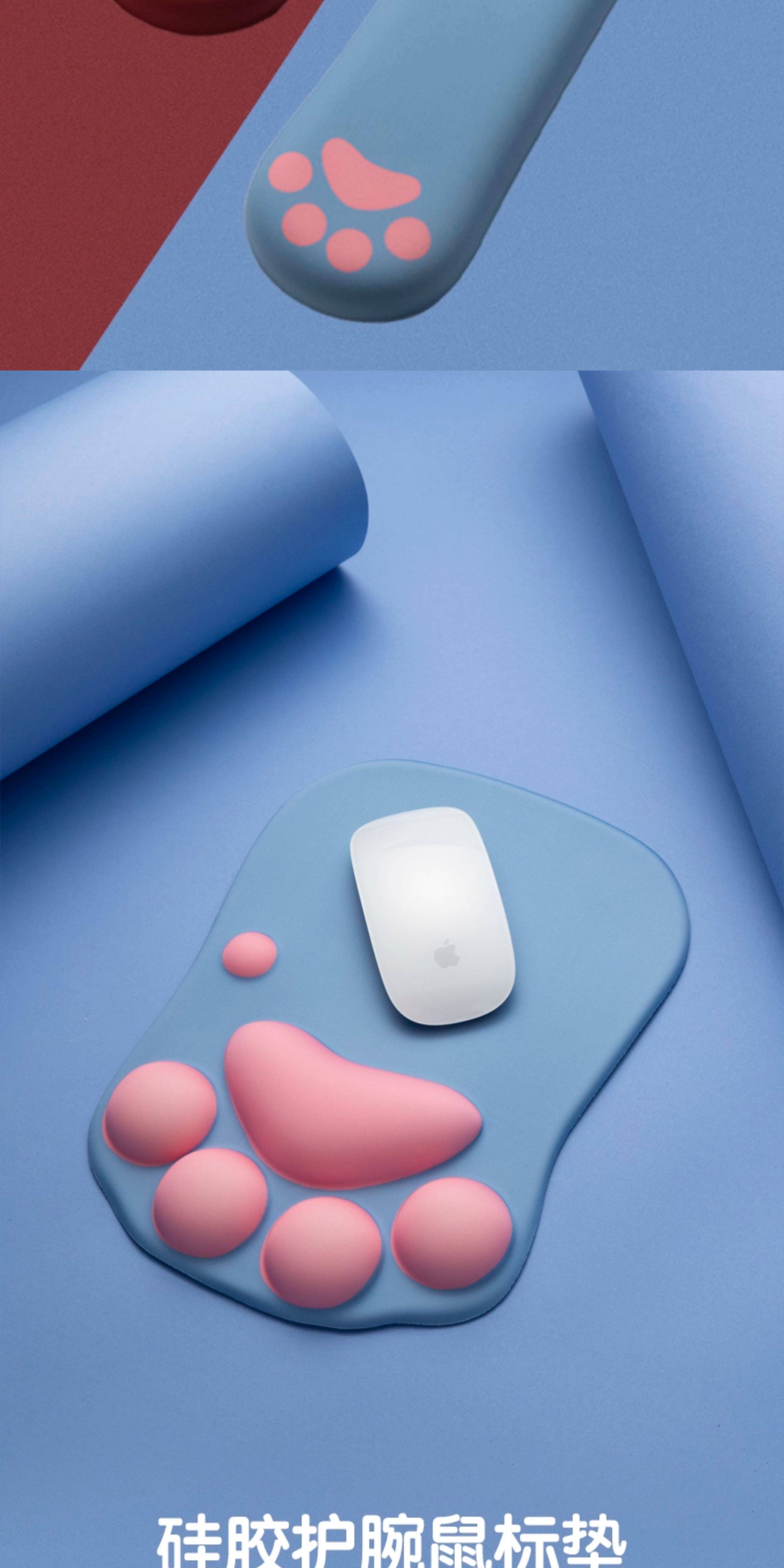 Cute Three-Dimensional Cat Paw Silicone Mouse Pad with Wrist Support, Memory Foam Wrist Pad, Cartoon Non-Slip Office Gaming Desk Pad