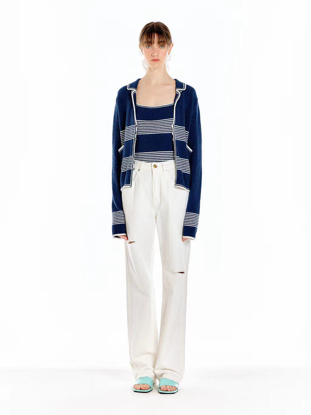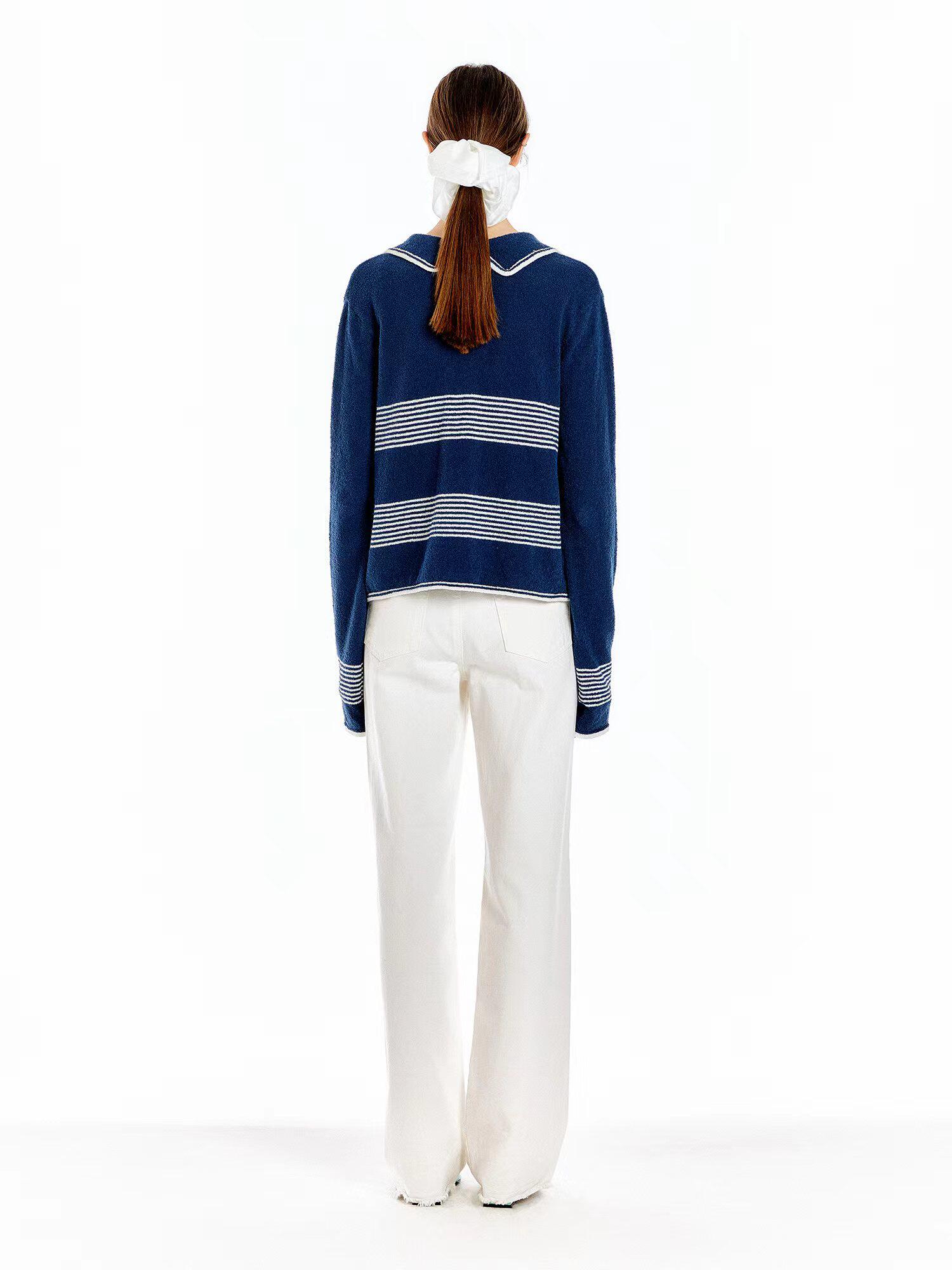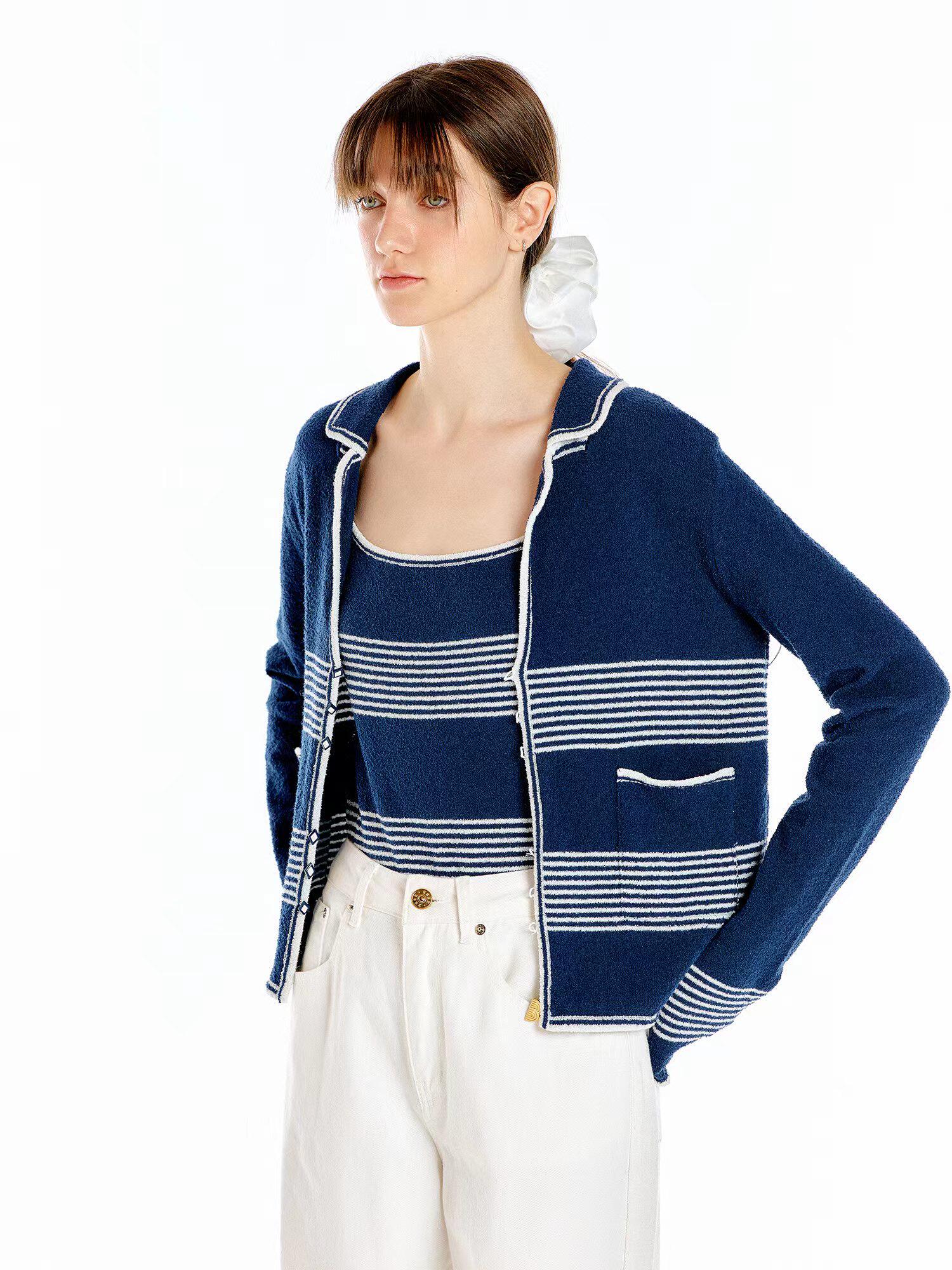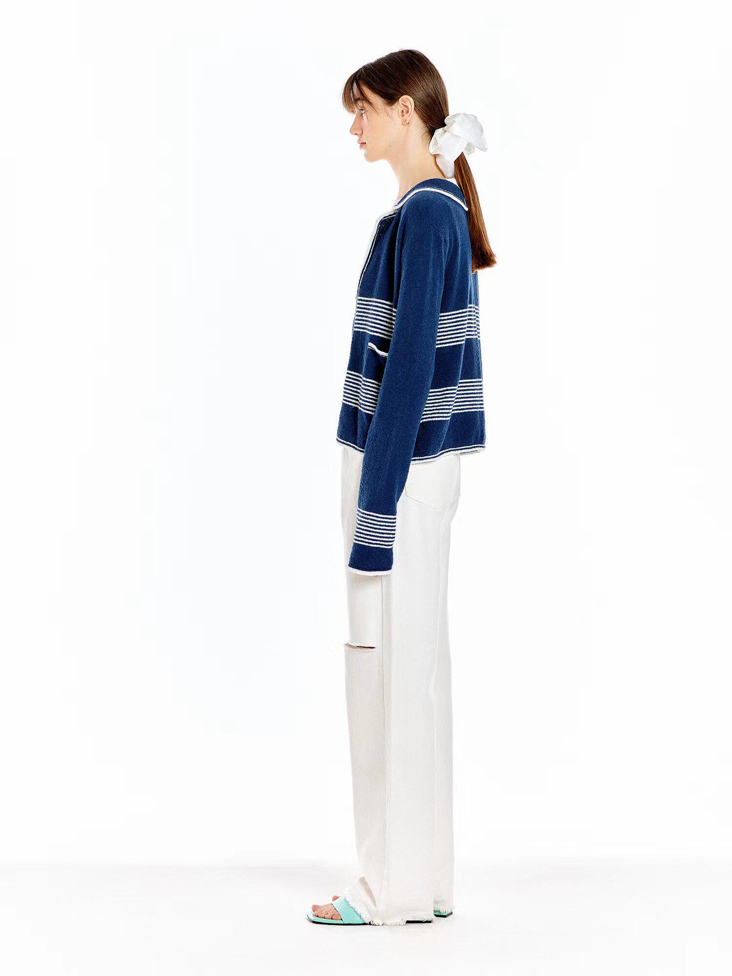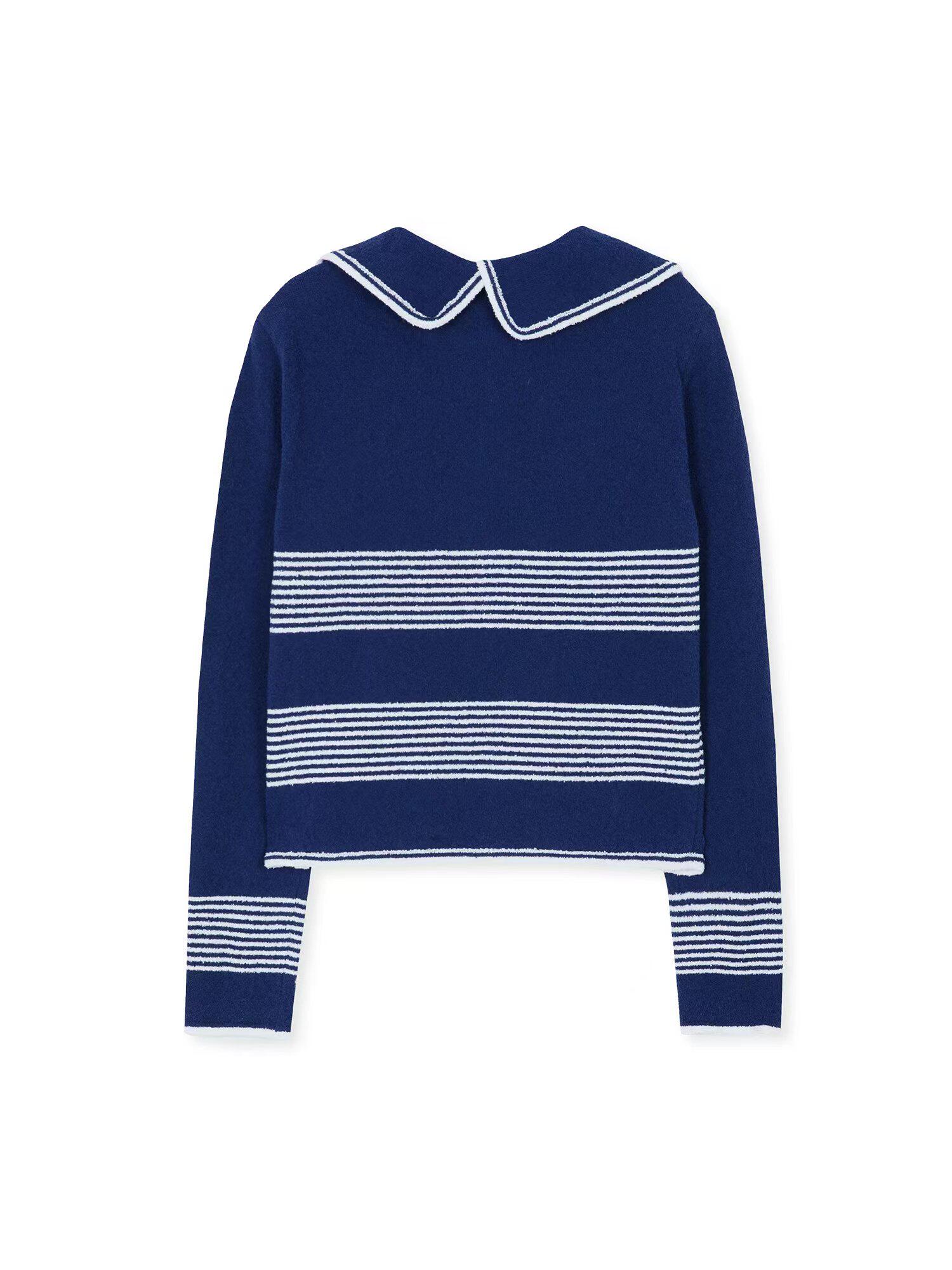 In Stock 70% off Eenk Navy Sailor Collar Striped Knit Cardigan Top