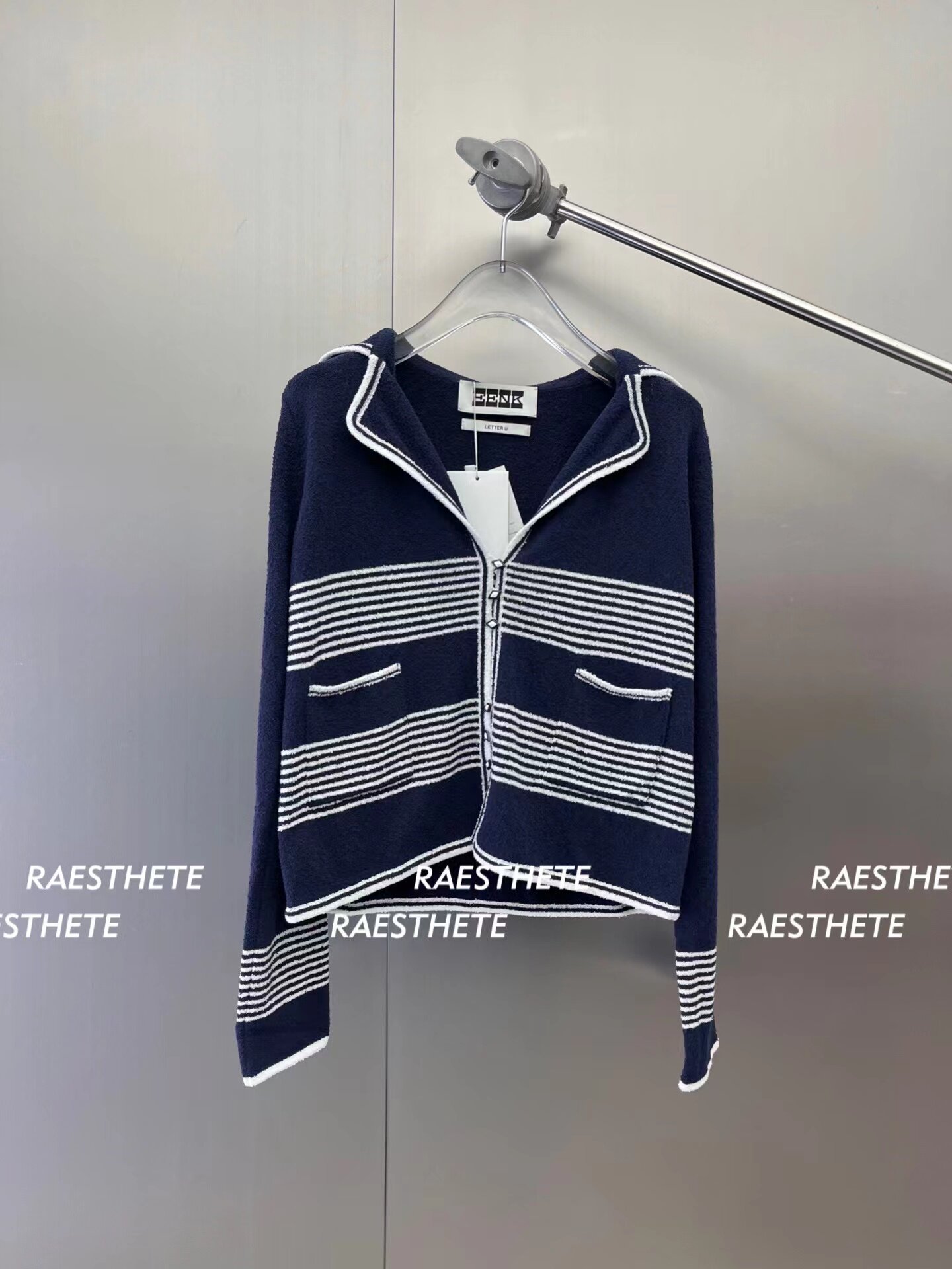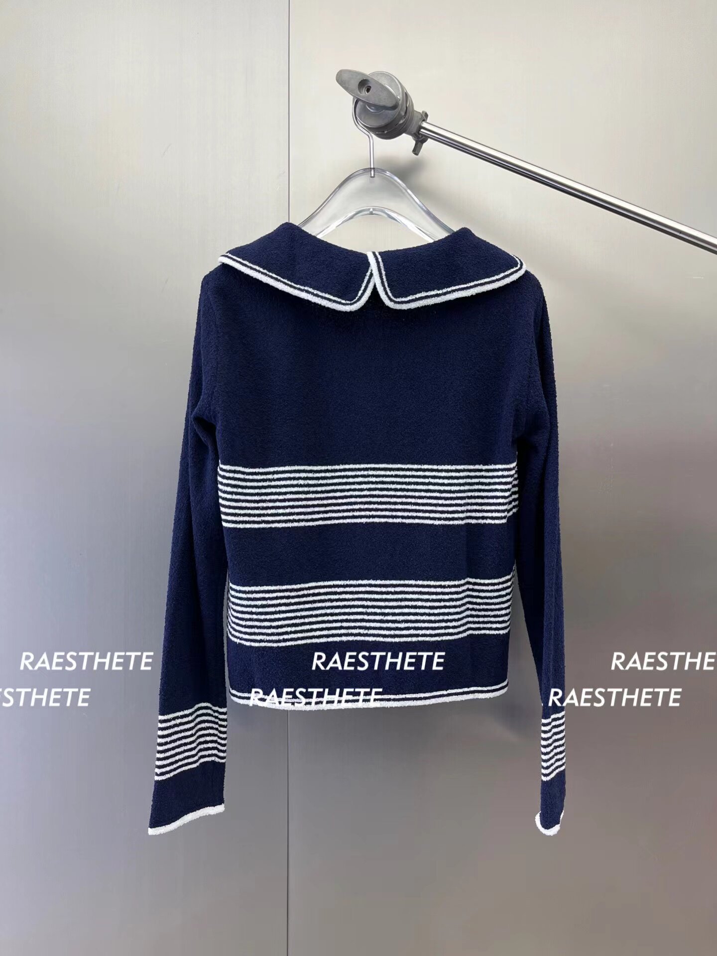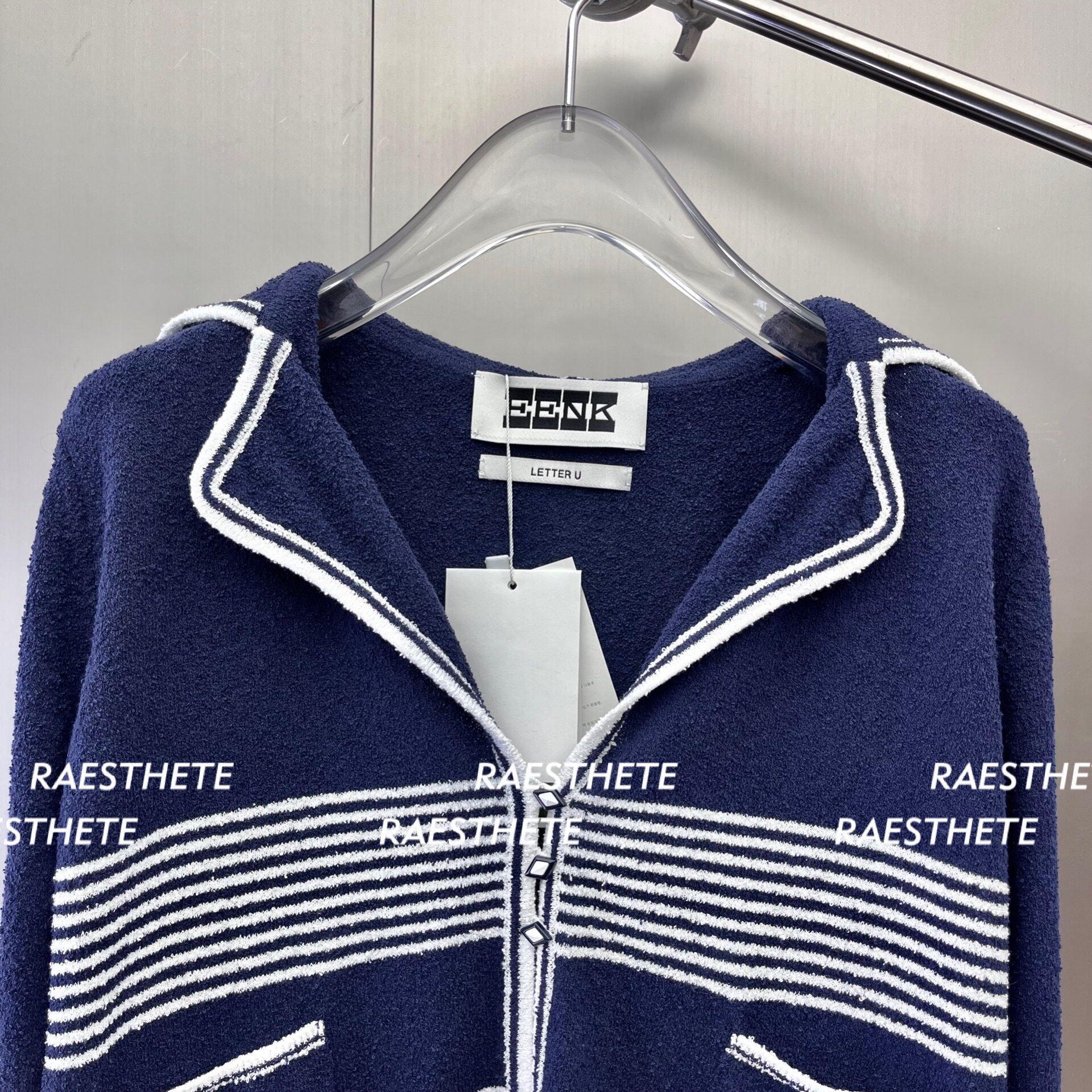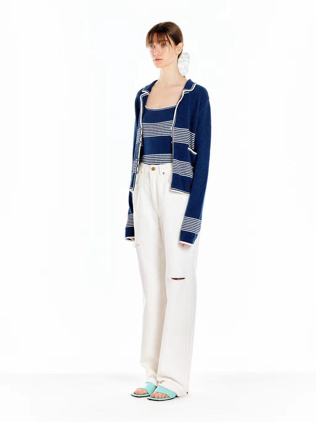 In Stock 70% off Eenk Navy Sailor Collar Striped Knit Cardigan Top