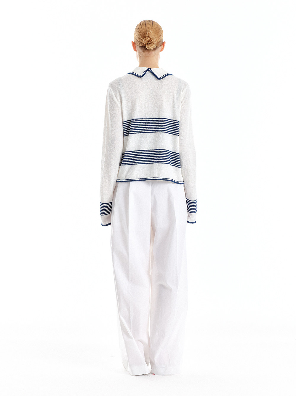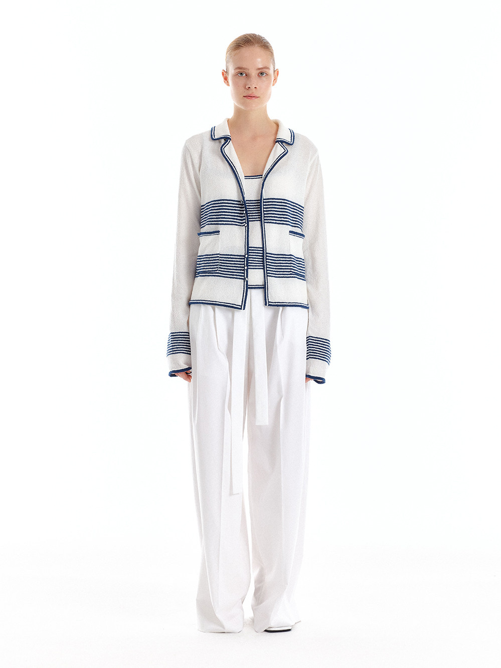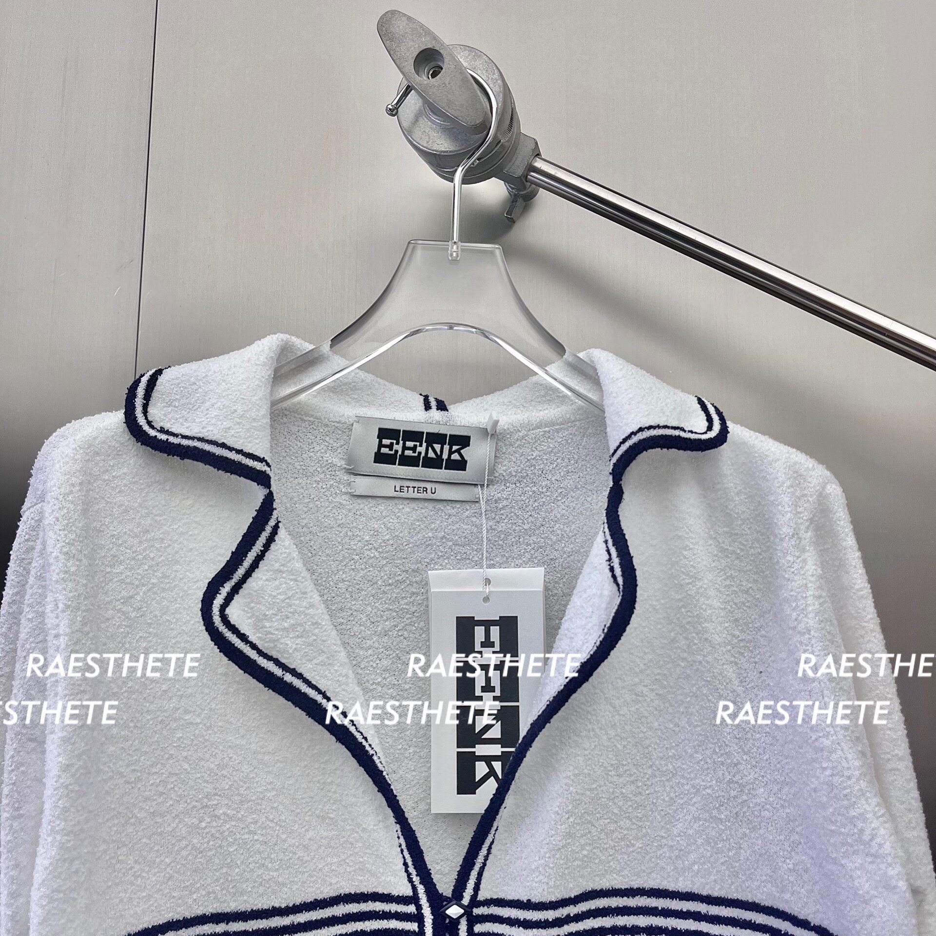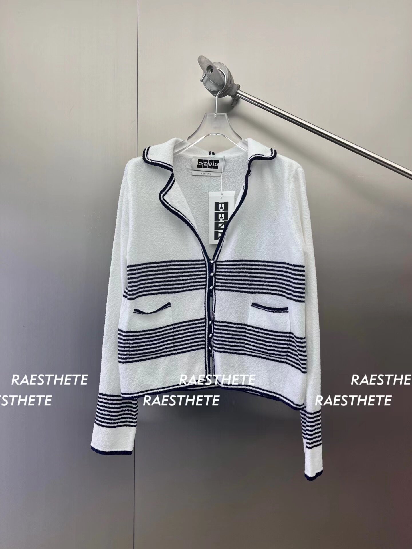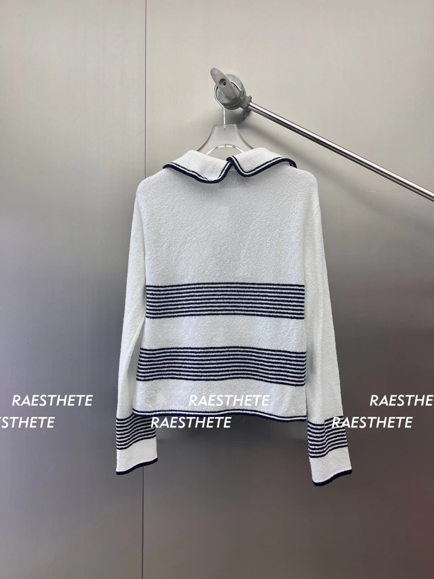 In Stock 70% off Eenk Navy Sailor Collar Striped Knit Cardigan Top