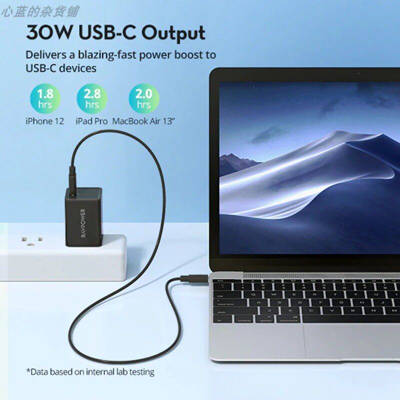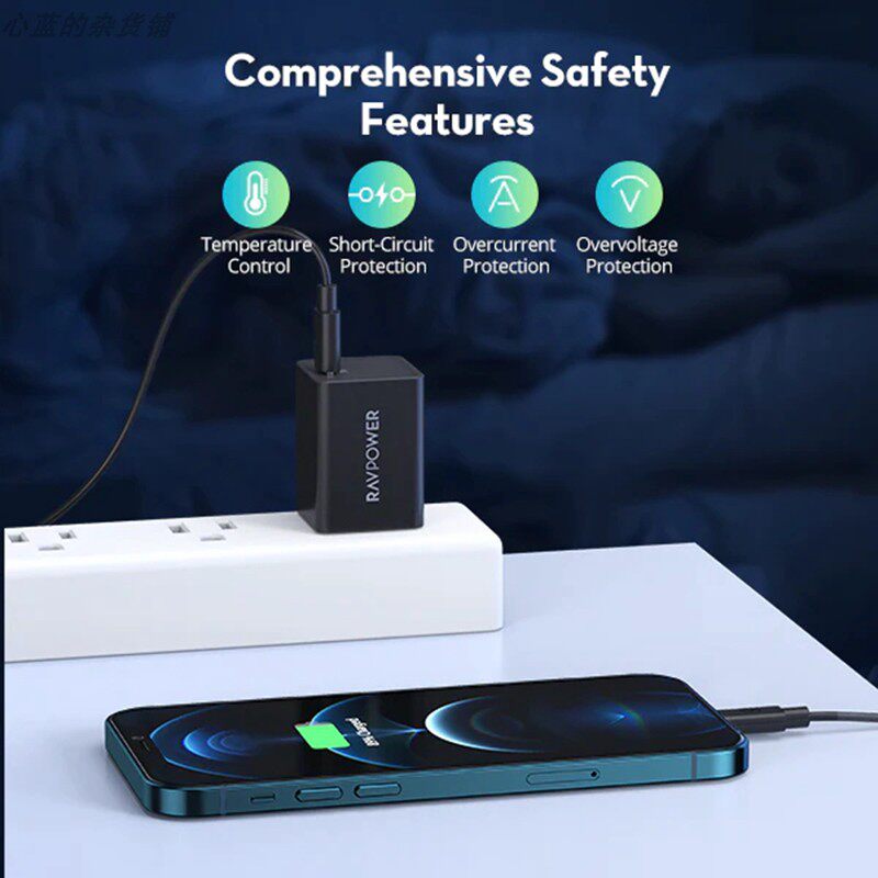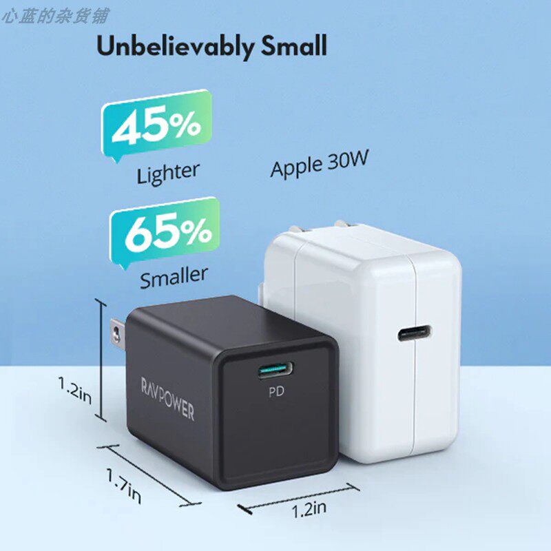 Ravpower Gallium Nitride Pd Fast Charging 30W Mini Charger Suitable for iPhone 8 X Xr 11 12 13 14 15 Xiaomi Huawei Samsung Mobile Phones and Tablets Supports Pps