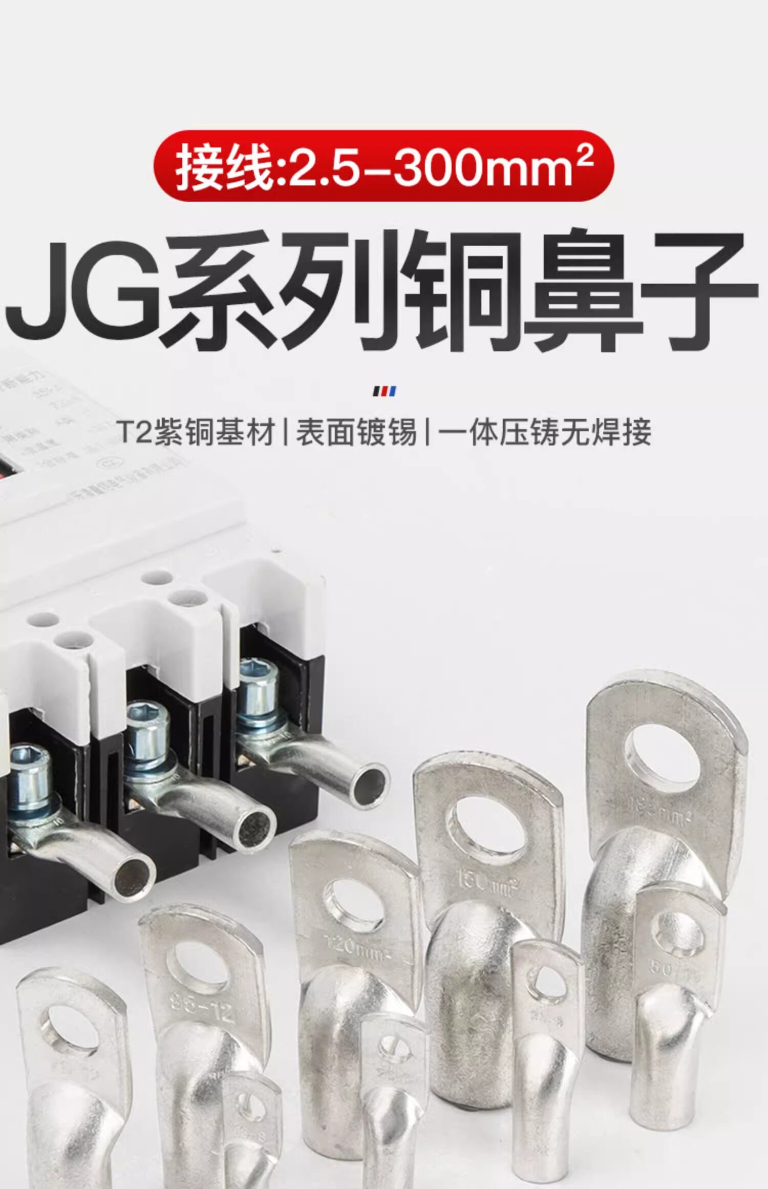 Phoenix A-Grade Jg10/16/25/35/50/70/120 Marine Single-Pressure Thick Copper Connector Copper Lug Terminal
