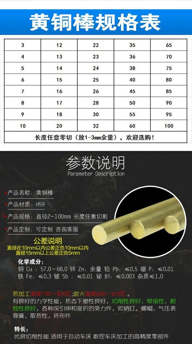 H59 Brass Rod Solid Copper Rod Yellow Round Copper Rod 4mm 5mm 6mm 8mm 10Mm-200Mm H62 Copper Rod