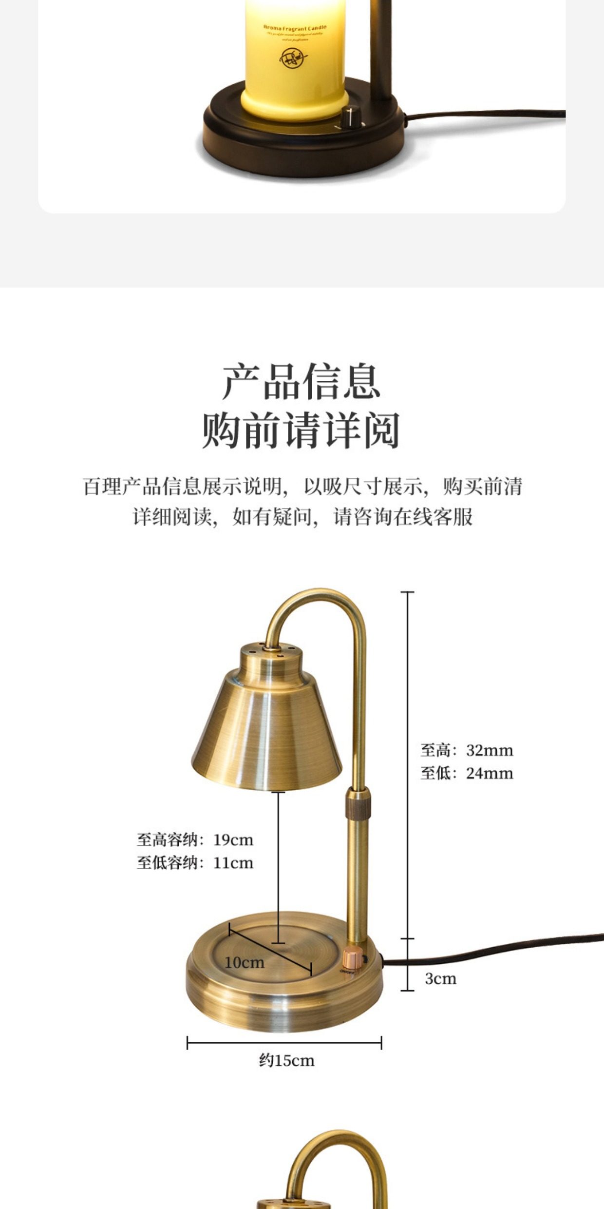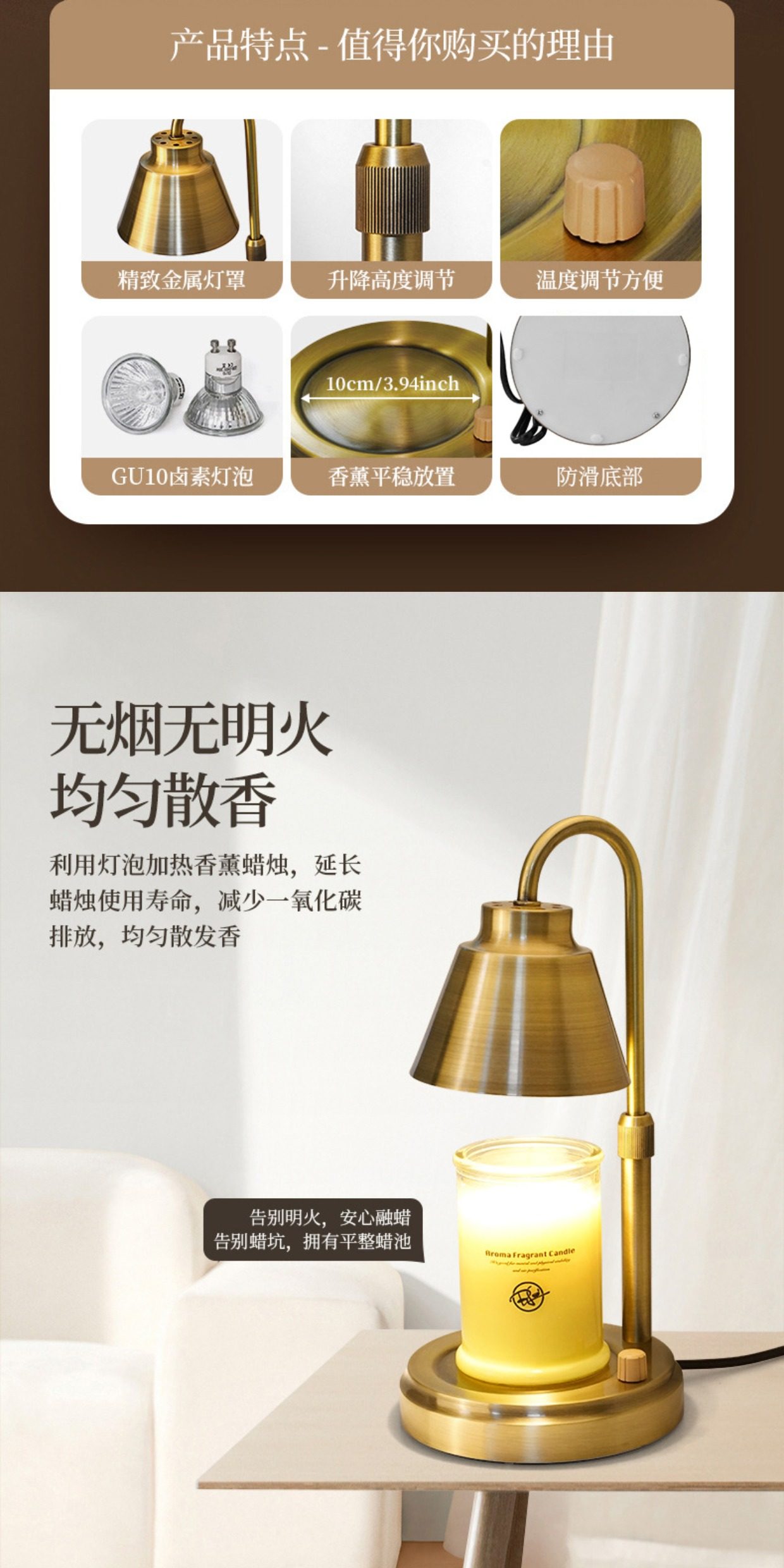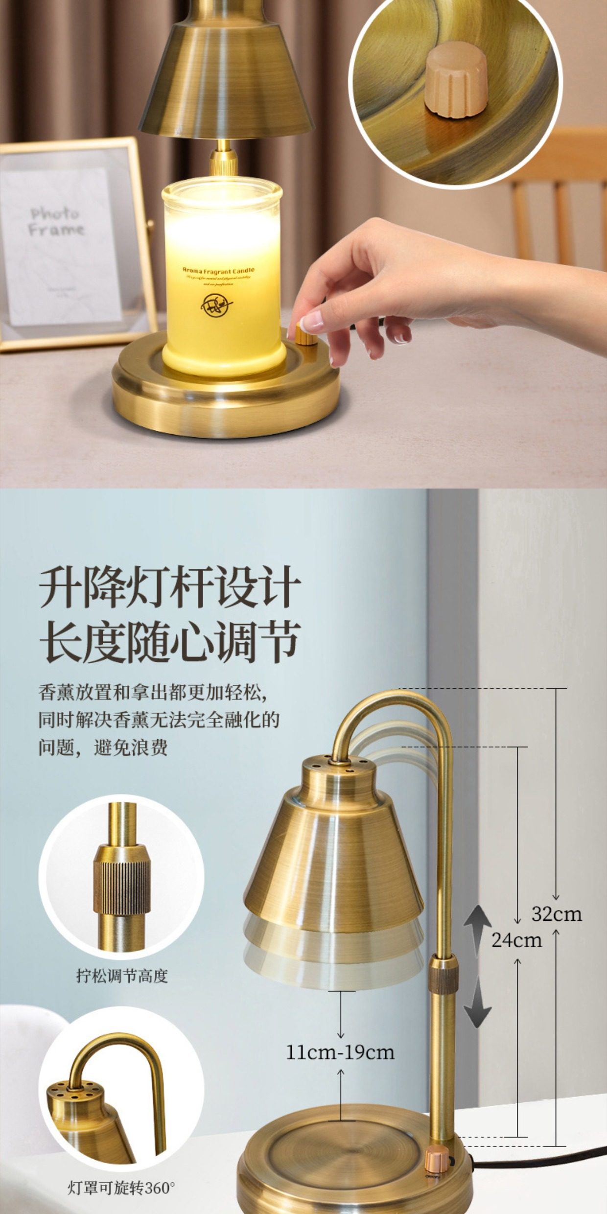 Retro copper ins scented candle lamp bedside table lamp bedroom atmosphere lamp melted wax lamp night light scented candle lamp