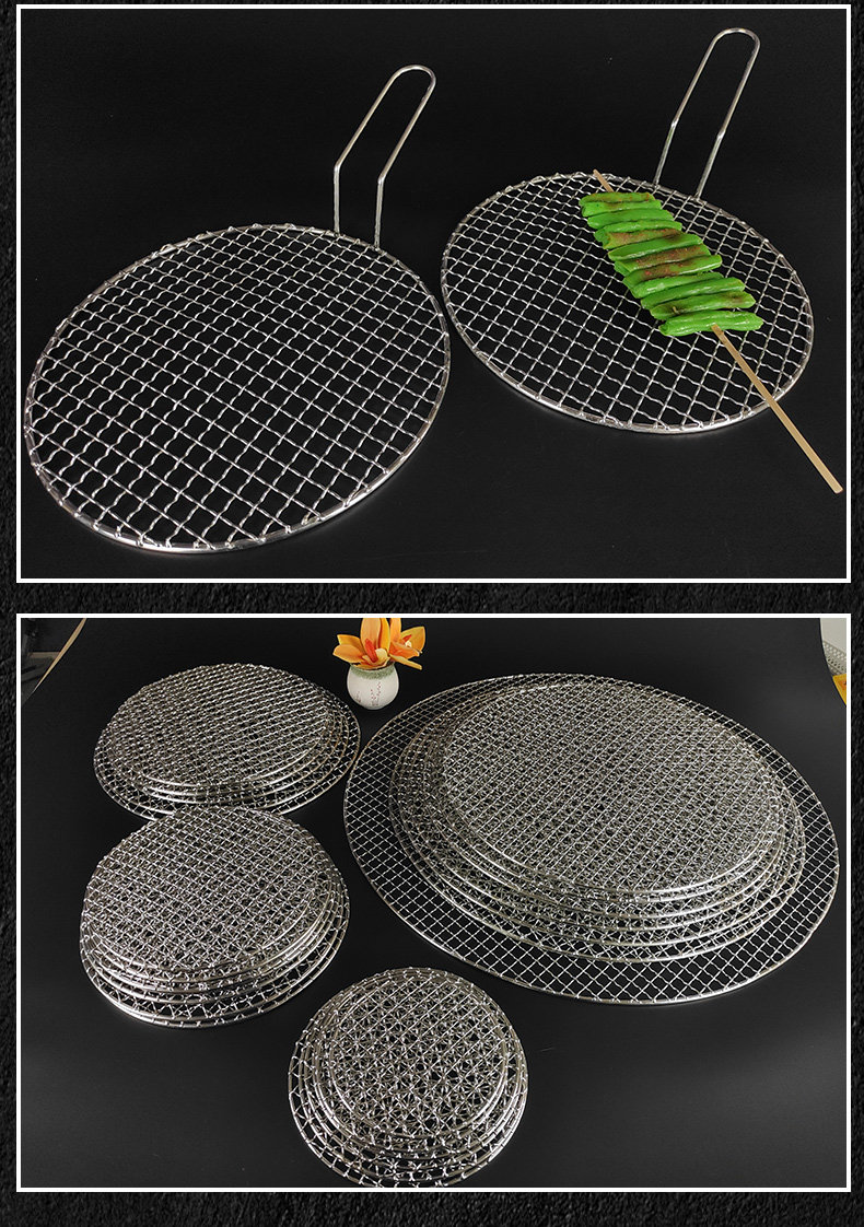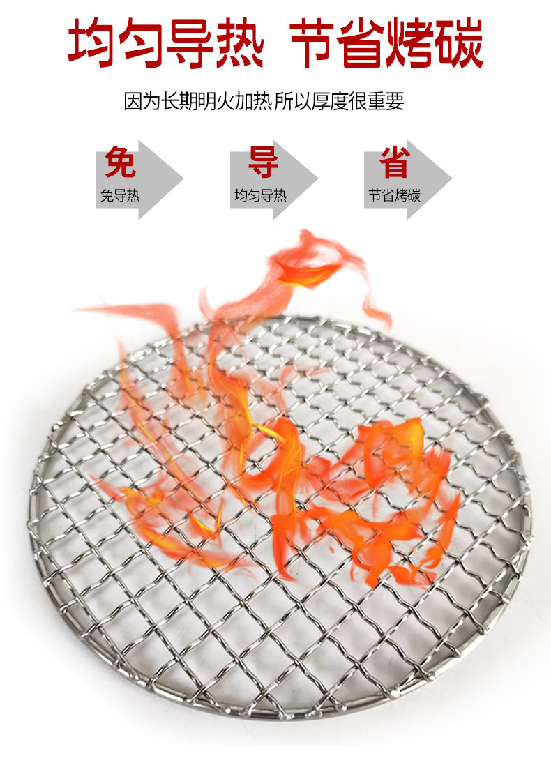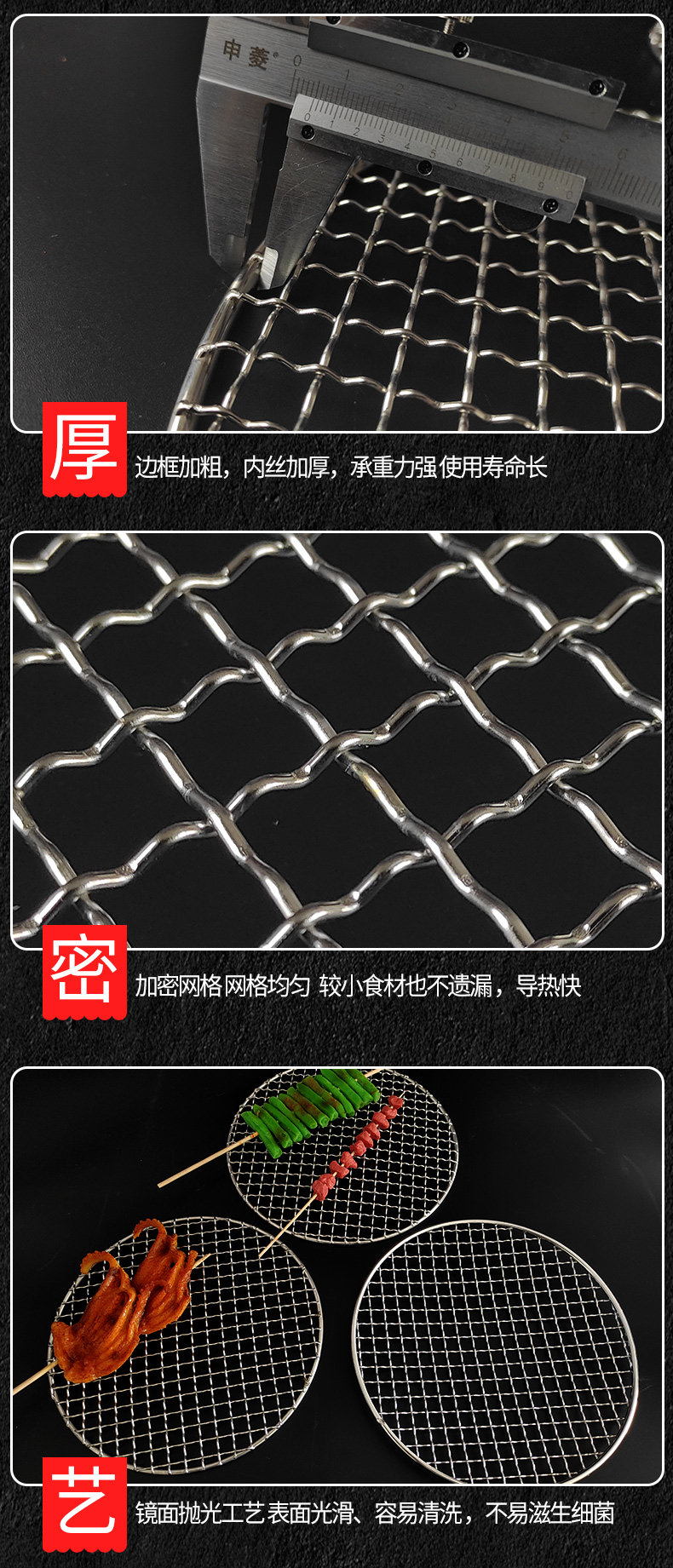Round Barbecue Grill Stainless Steel Household Outdoor Barbecue Grate Smoked Meat Thickened Grid Oil-Draining Grill Special Grill Net
