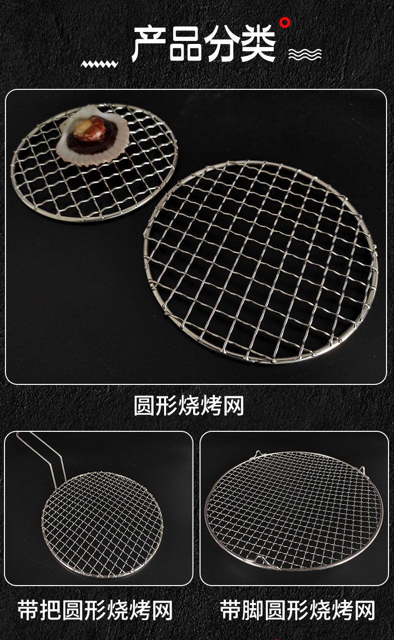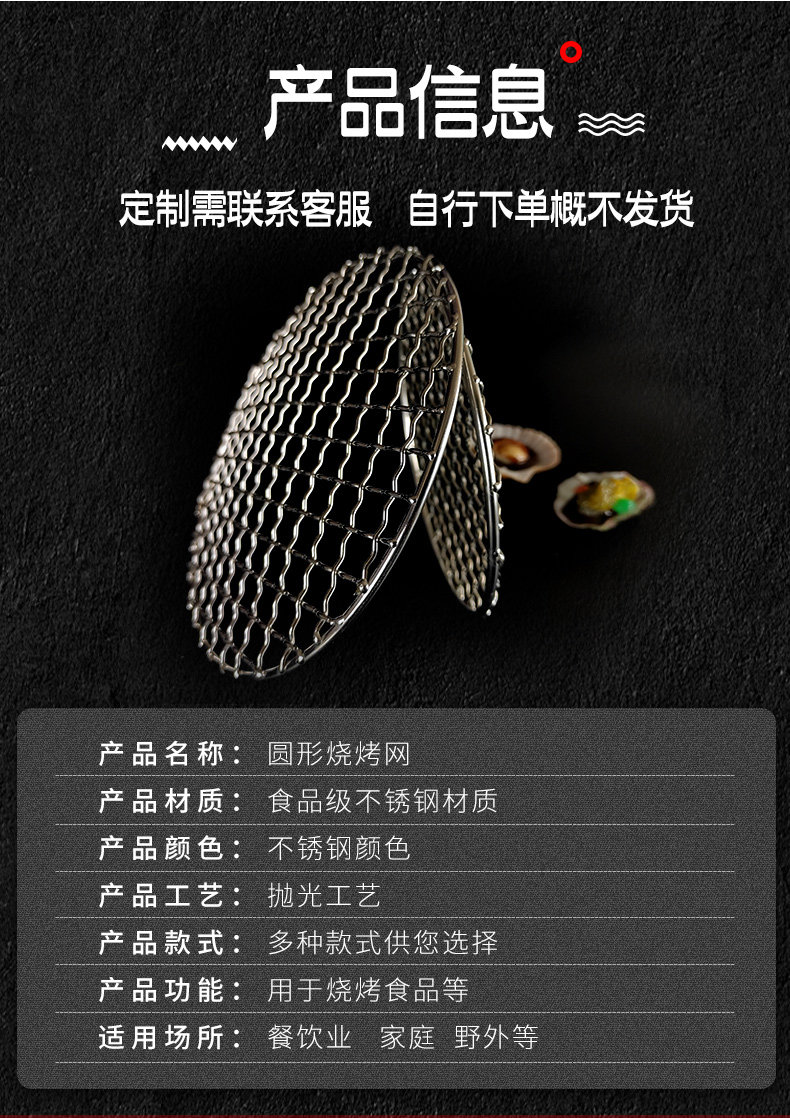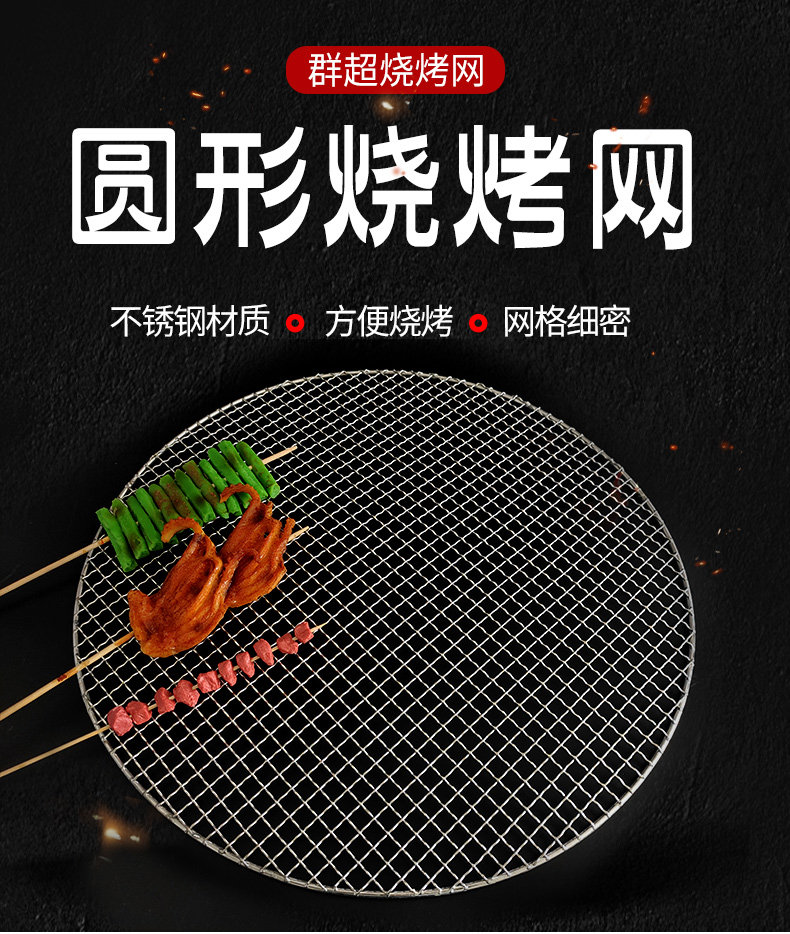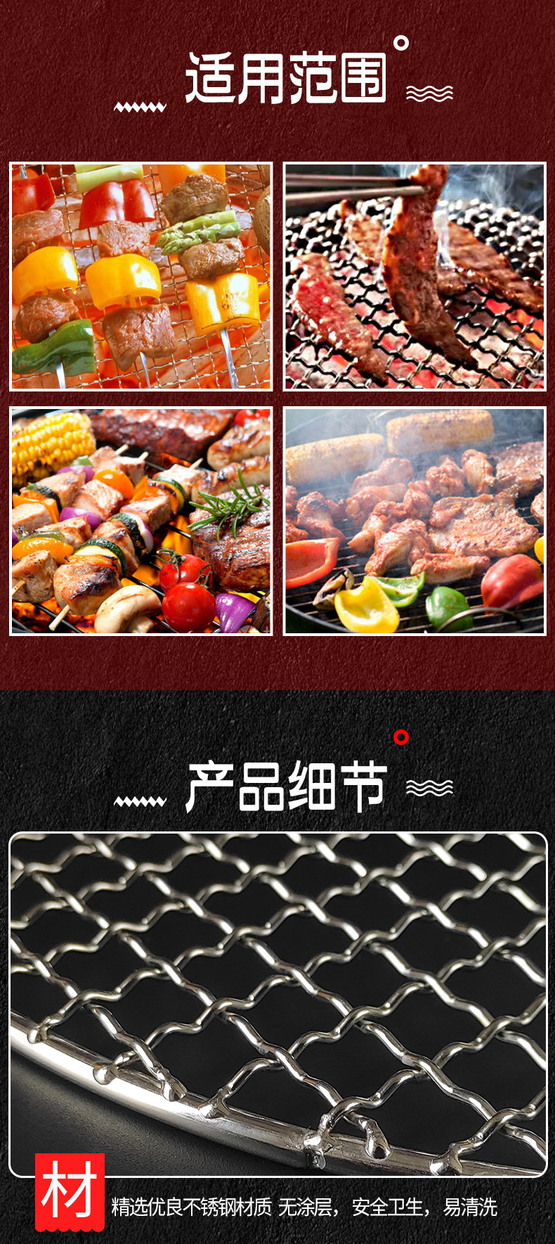 Round Barbecue Grill Stainless Steel Household Outdoor Barbecue Grate Smoked Meat Thickened Grid Oil-Draining Grill Special Grill Net