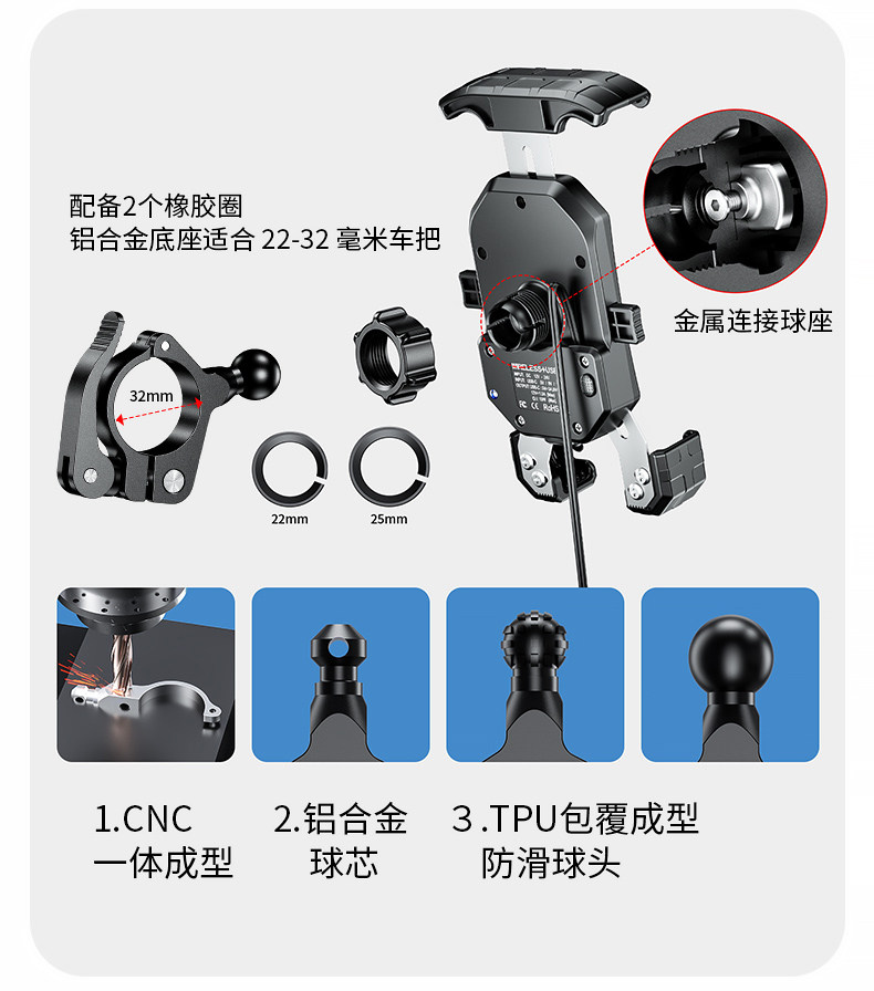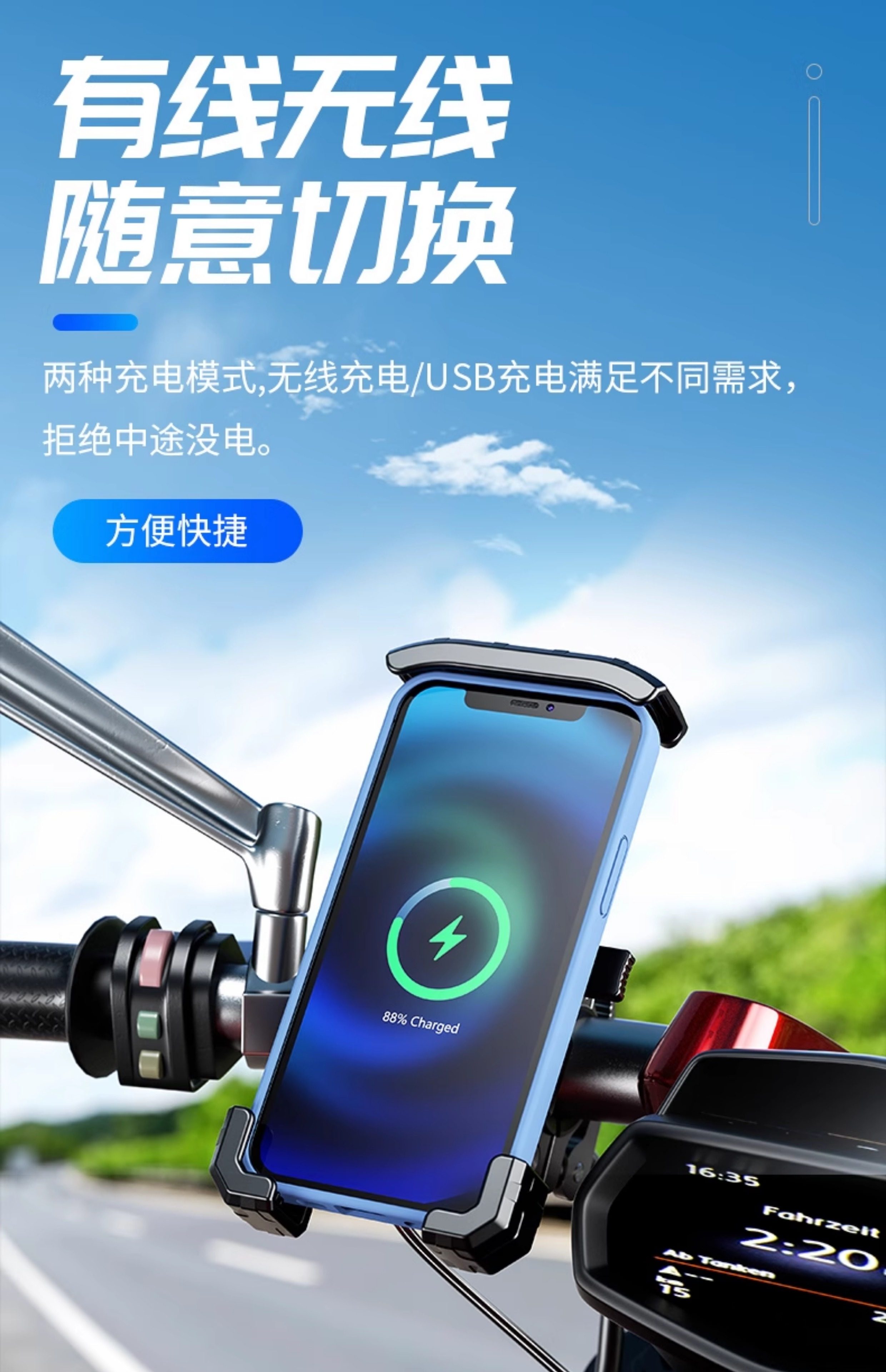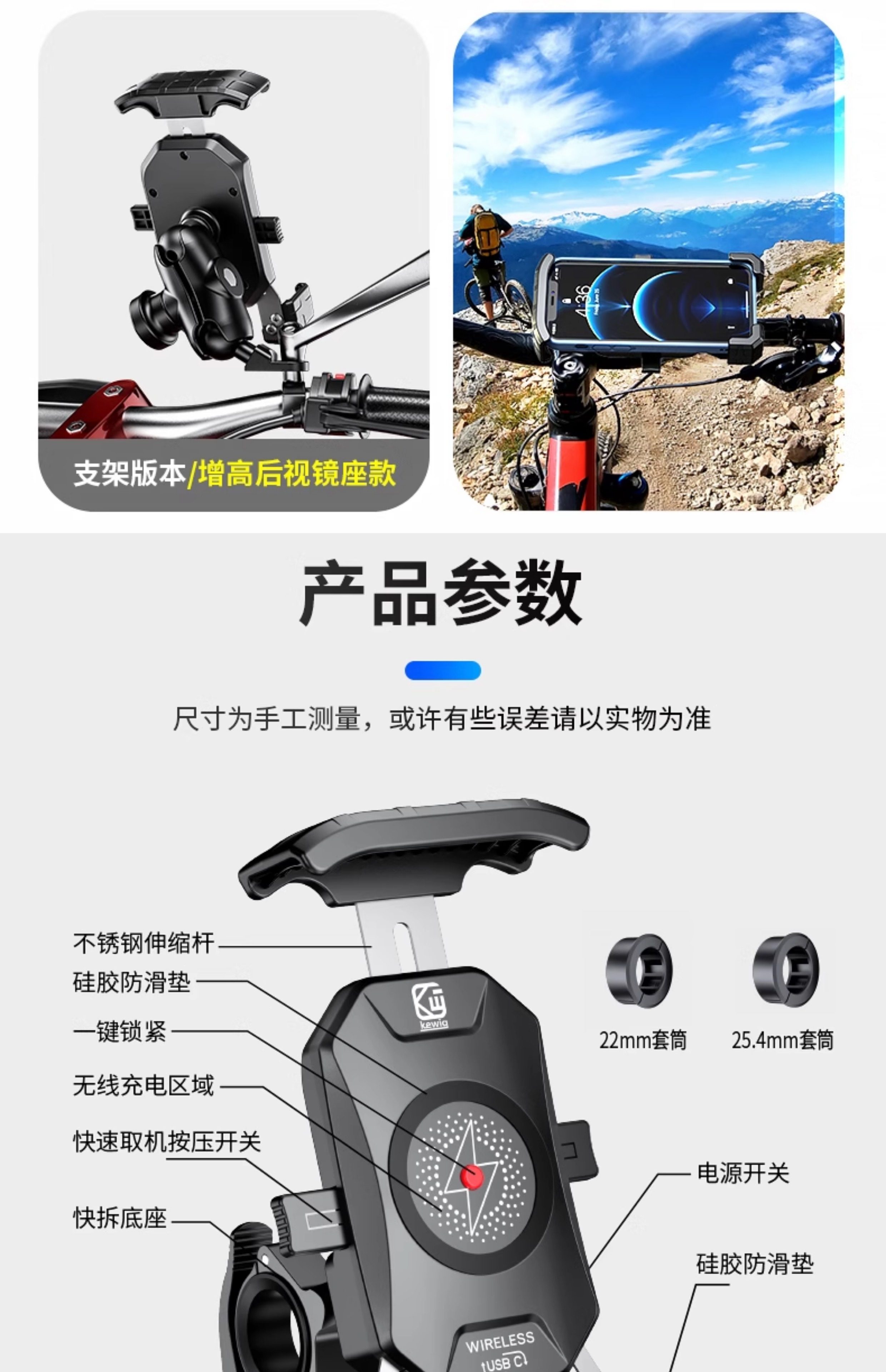 Sort by color Quick release handlebar model-recommended,Rearview mirror model,Upgraded handlebar model - anti-theft linkage (the best-selling one),Upgraded rearview mirror model-anti-theft link,Ordinary four-claw version comes with rearview mirror base,Charging model - supports USB port for power extraction/motorcycle connection for power extraction (see picture for details),Rechargeable quick-release handlebar model - (wireless + wired fast charging) recommended,Rechargeable rearview mirror model - (wireless + wired fast charging),Rechargeable upgraded handlebar model - (wireless + wired fast charging) anti-theft link,Rechargeable upgraded rearview mirror model - (wireless + wired fast charging) anti-theft link