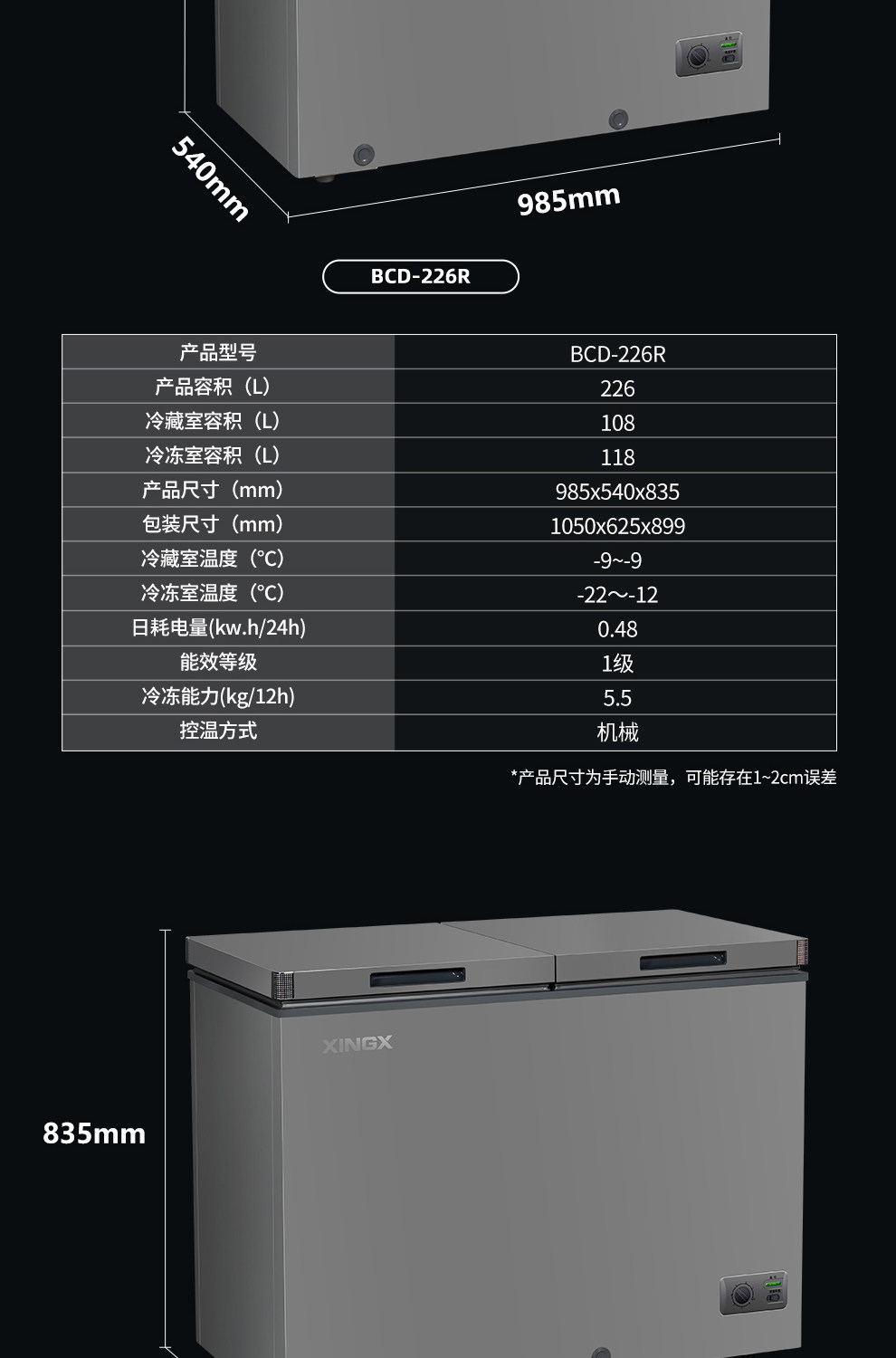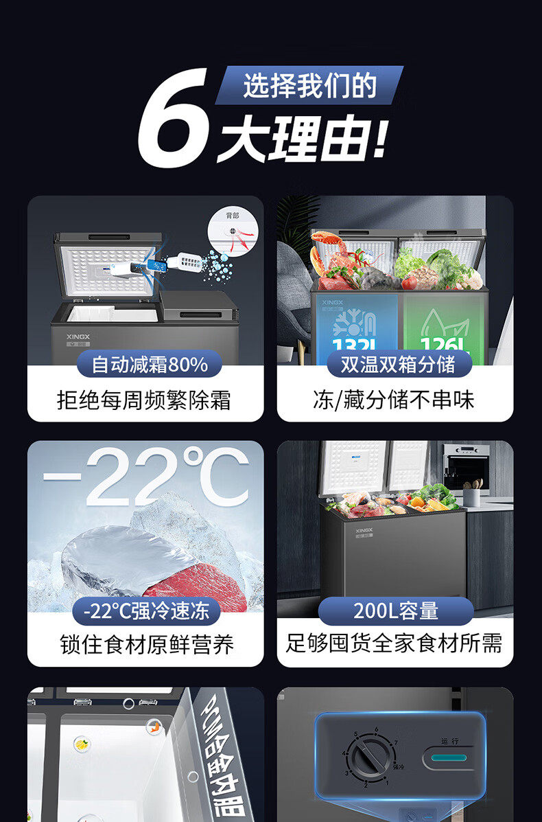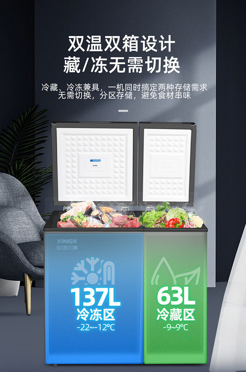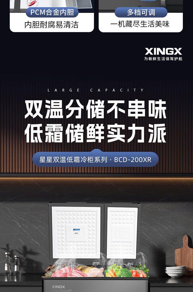New Frost-Free Model XINGX 200/230/270 Liter Dual-Temperature Freezer for Home Use, Refrigeration and Freezing Bcd-230Xr
