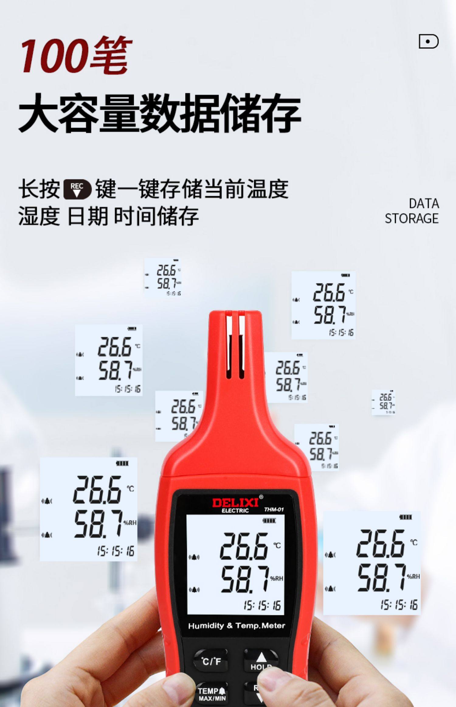Delixi temperature and humidity meter high-precision industrial grade temperature and humidity measuring instrument indoor electronic digital thermometer and humidity meter