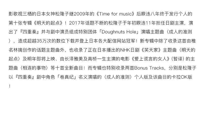 Ready stock/Matsuko Matsu Takako - Tomorrow <Tomorrow's Starting Point>/Album CD