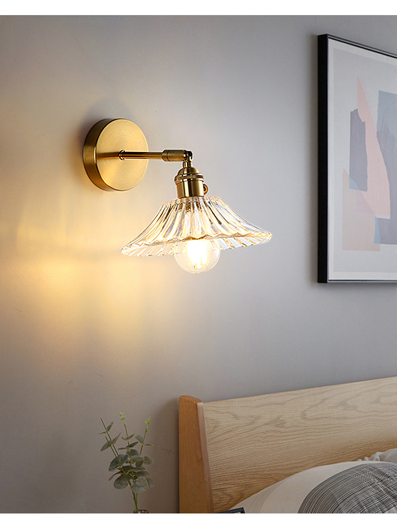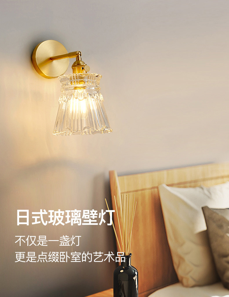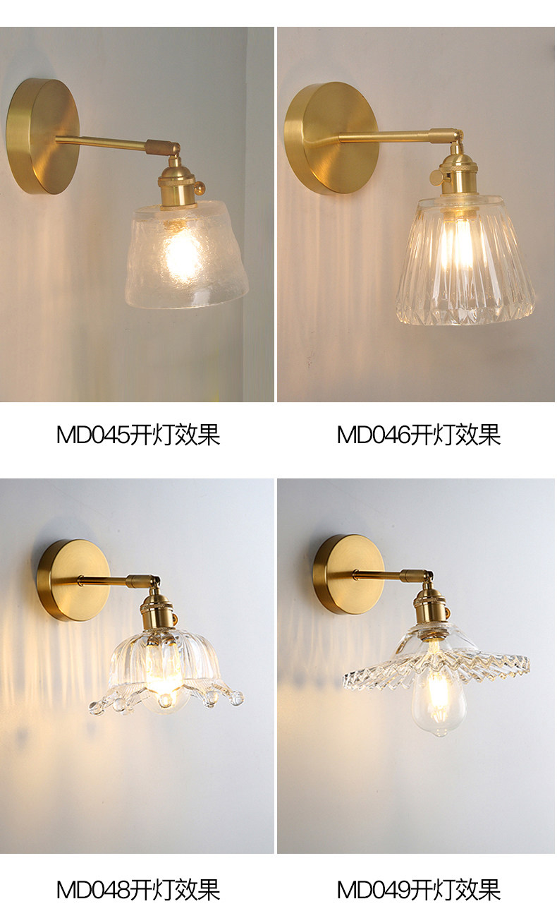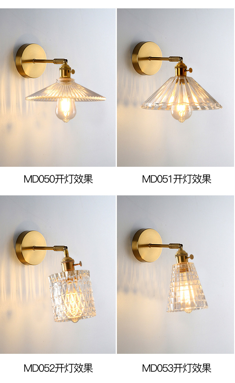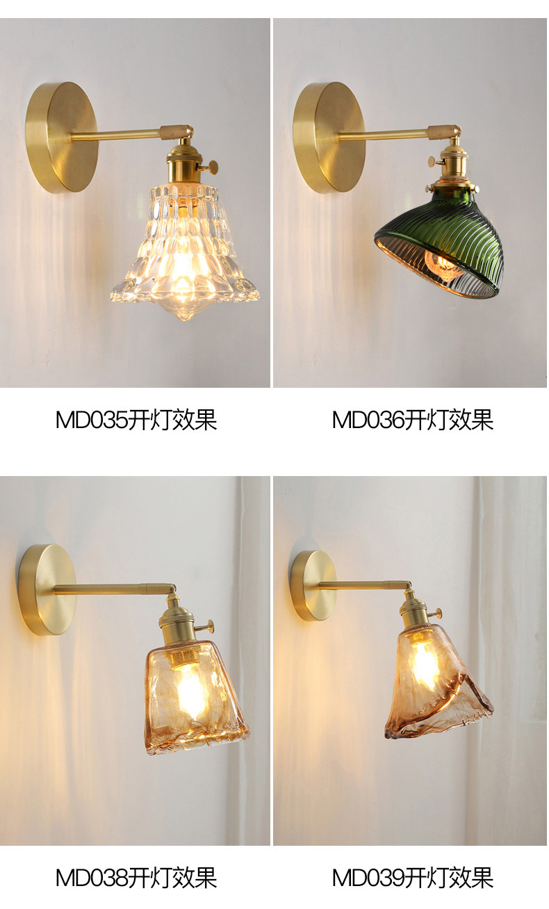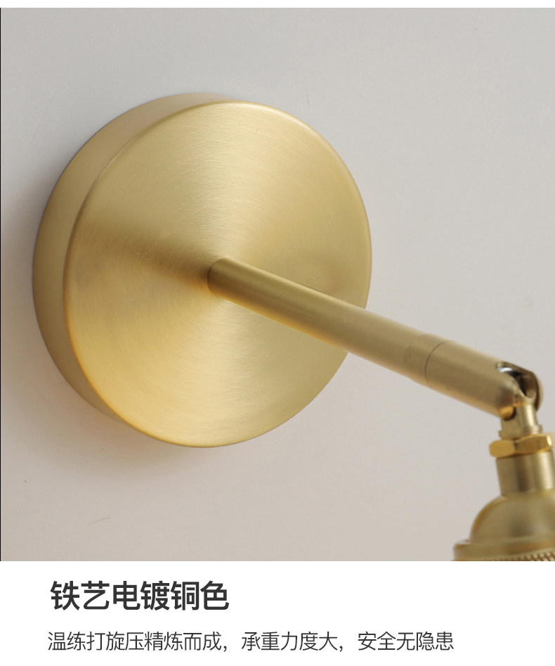 Nordic Bedside Wall Lamp American Retro Style Brass Light Luxury Glass Lamp Modern Minimalist Bathroom Bathroom Mirror Headlight