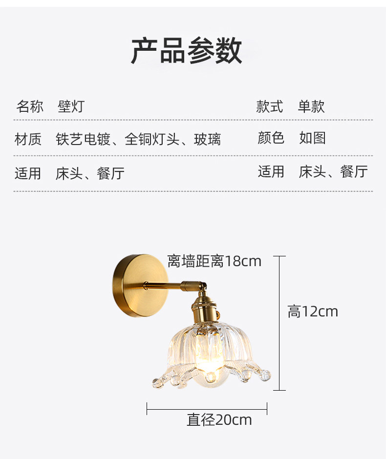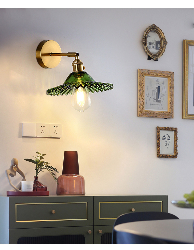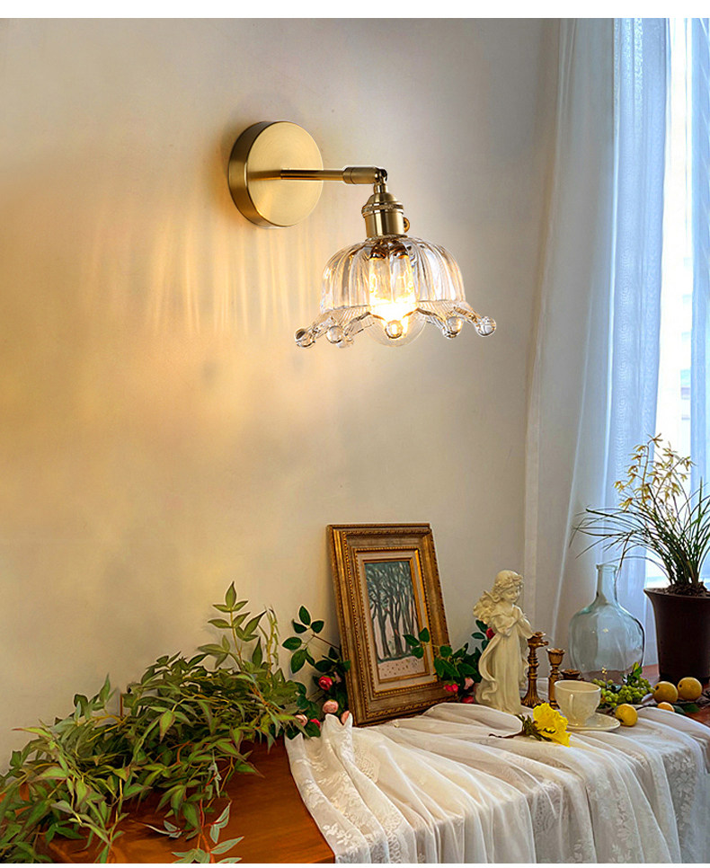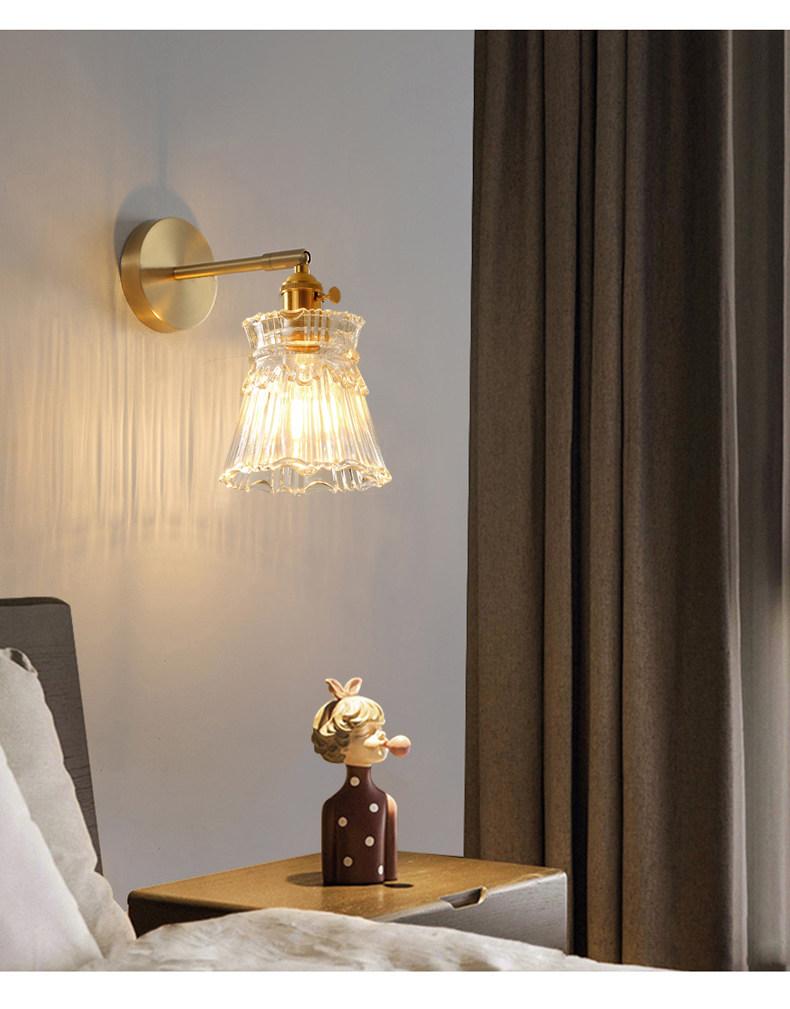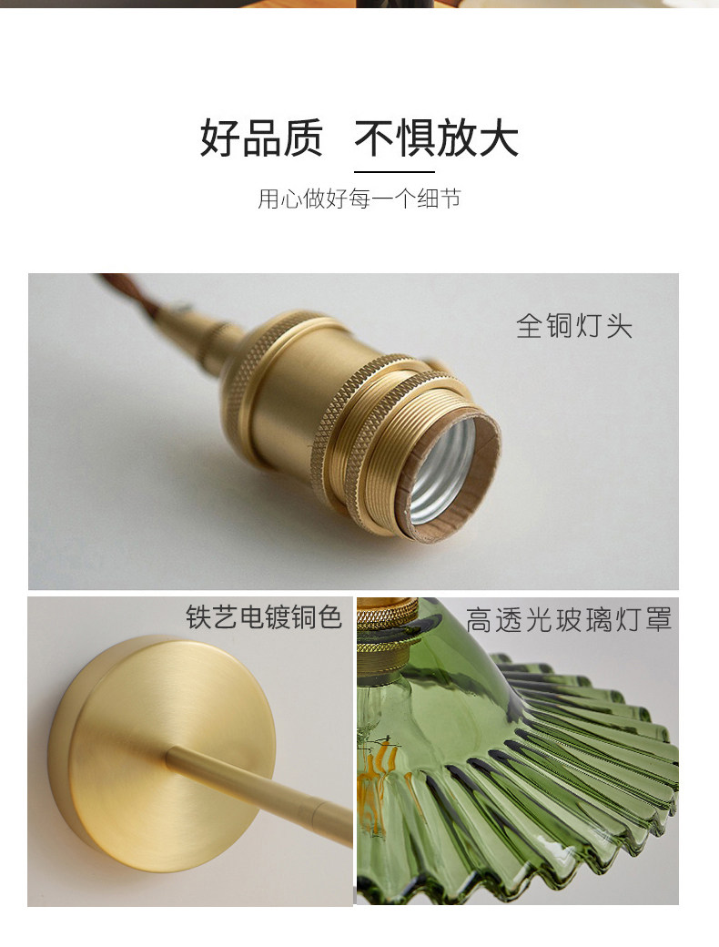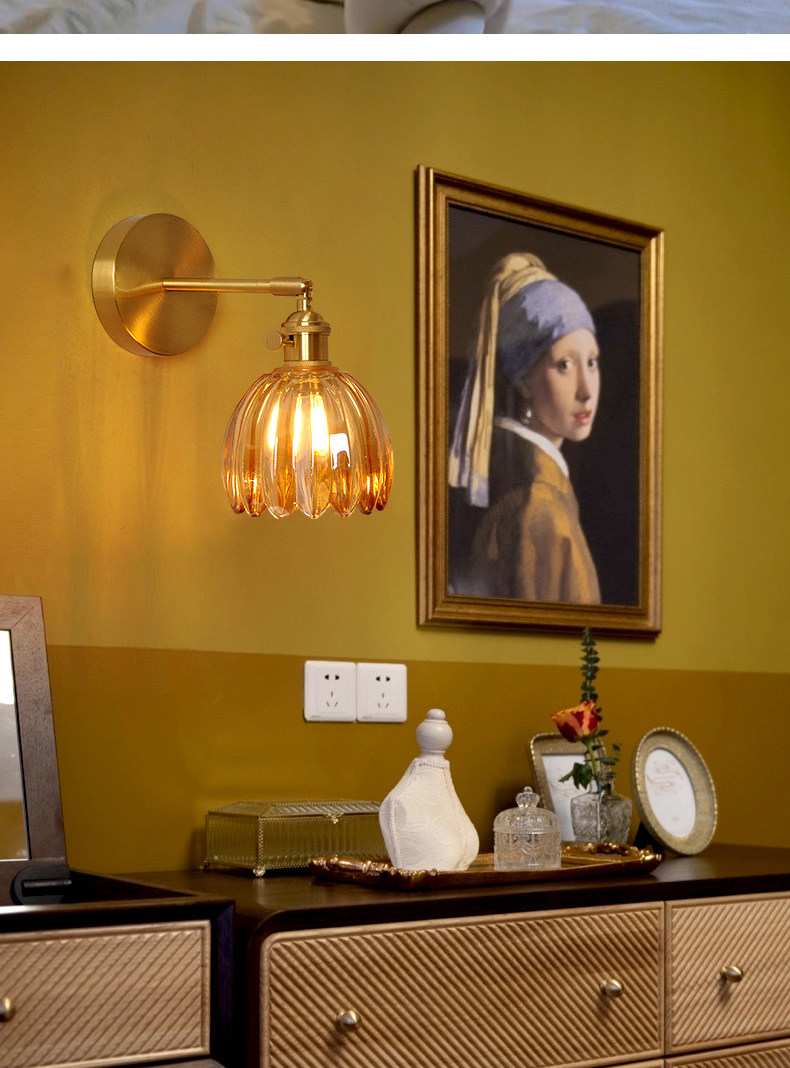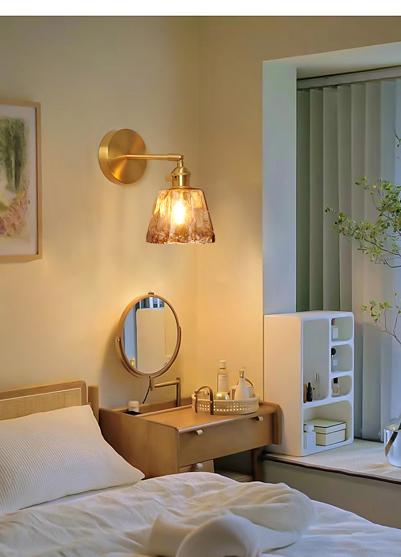 Nordic Bedside Wall Lamp American Retro Style Brass Light Luxury Glass Lamp Modern Minimalist Bathroom Bathroom Mirror Headlight