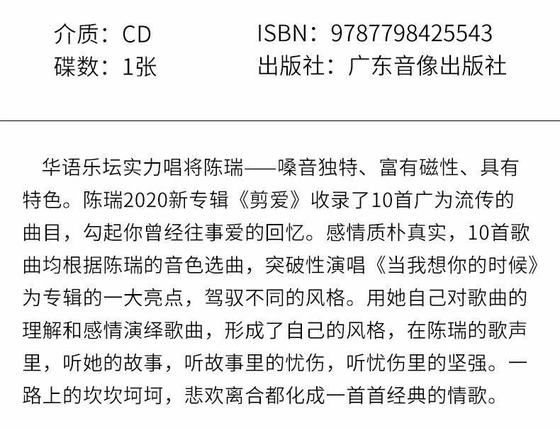 Chen Rui Cd Disc 2020 New Album "Cutting Love" High-Quality Audiophile Female Vocal Songs Genuine Record