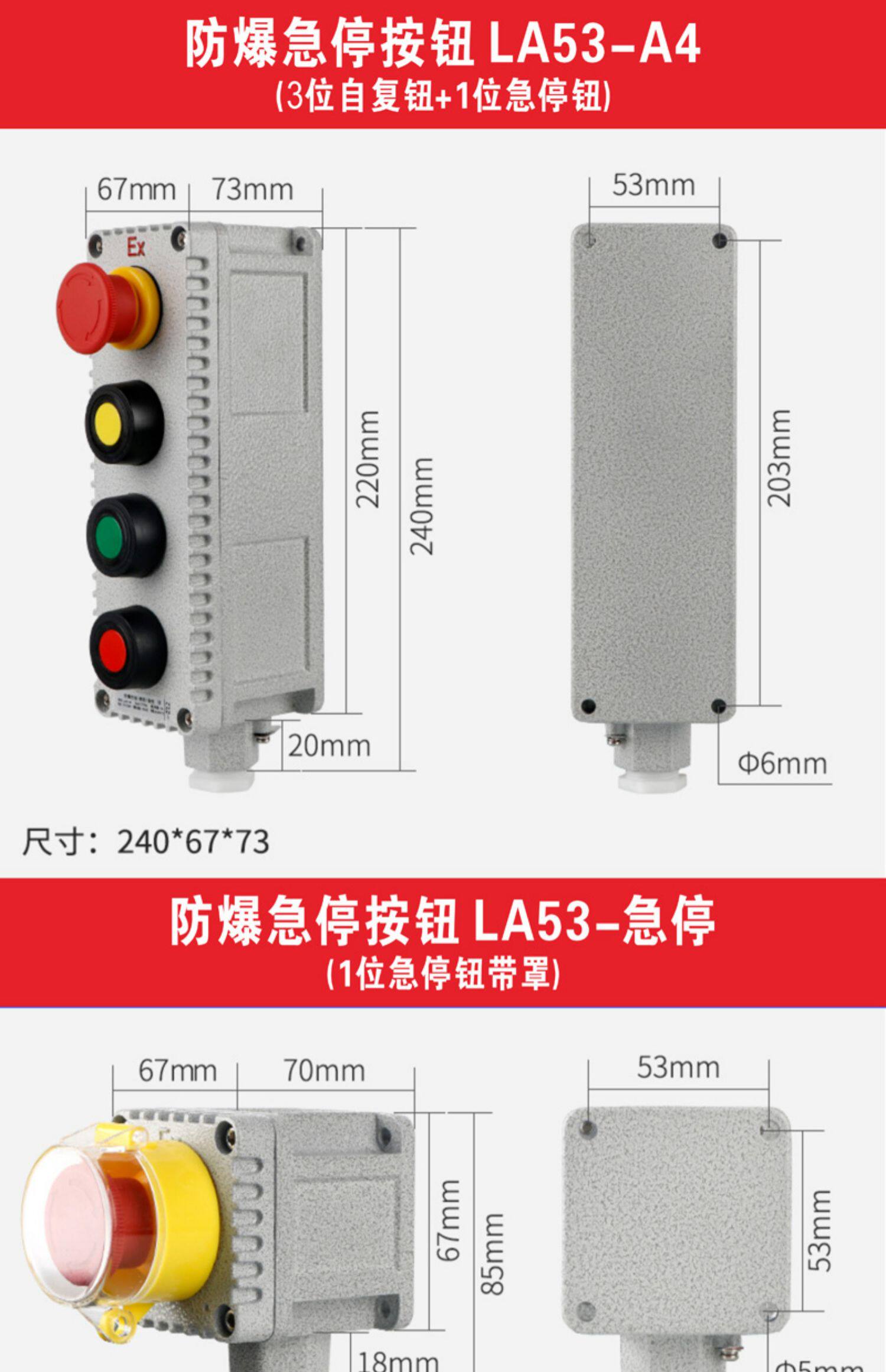 National Standard Explosion-Proof Control Emergency Stop Button La53 Start Stop Self-Resetting Button Knob Remote Control Button Box