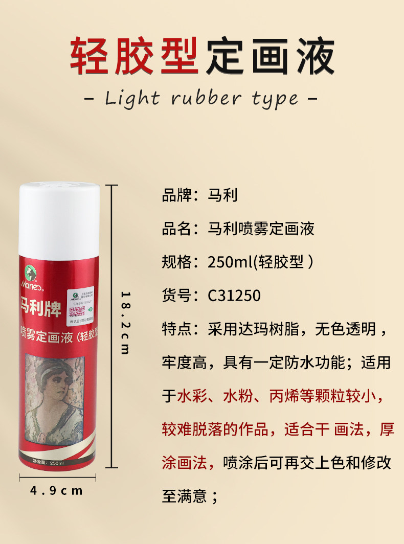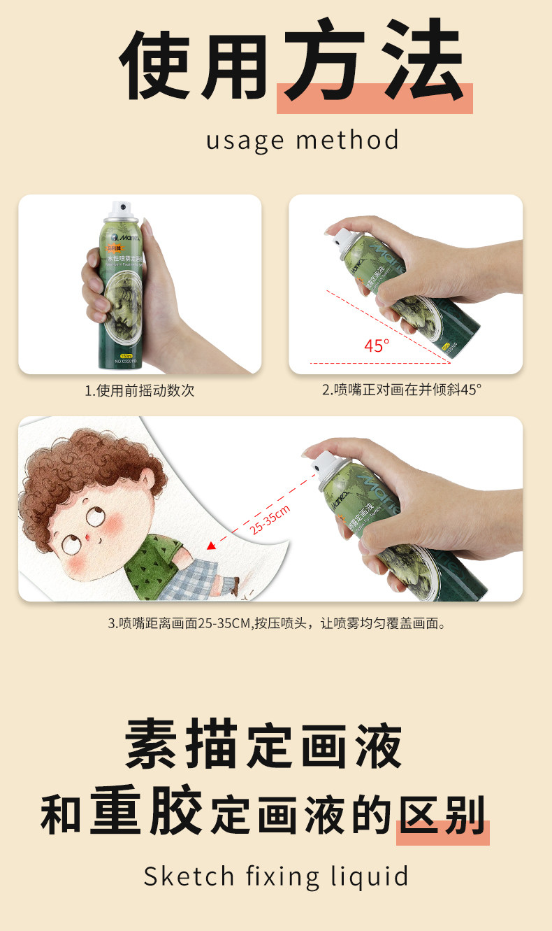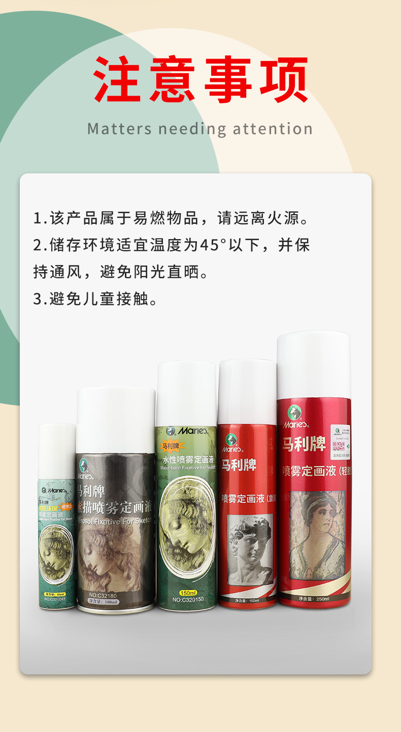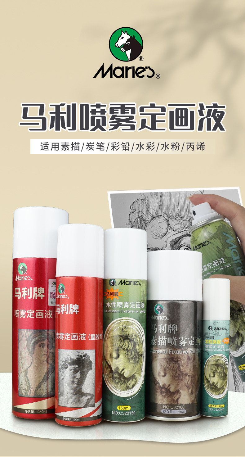 Marley Sketch Fixing Spray, Oil Pastel, Colored Pencil Fixing, Art Charcoal Pen Fixing, Protective Liquid, Heavy Glue Type, Light Glue Type, Water-Based Eco-Friendly Fixing Agent, Gouache, Watercolor, Acrylic Fixing Liquid, Fixing Color