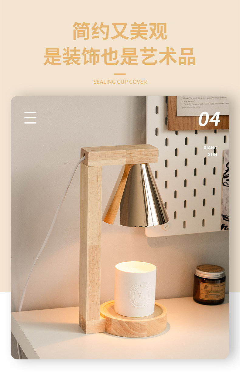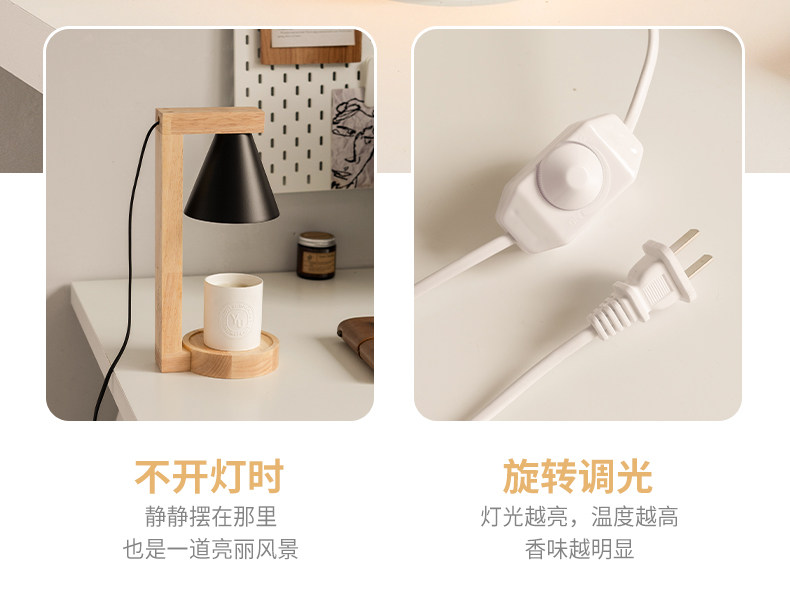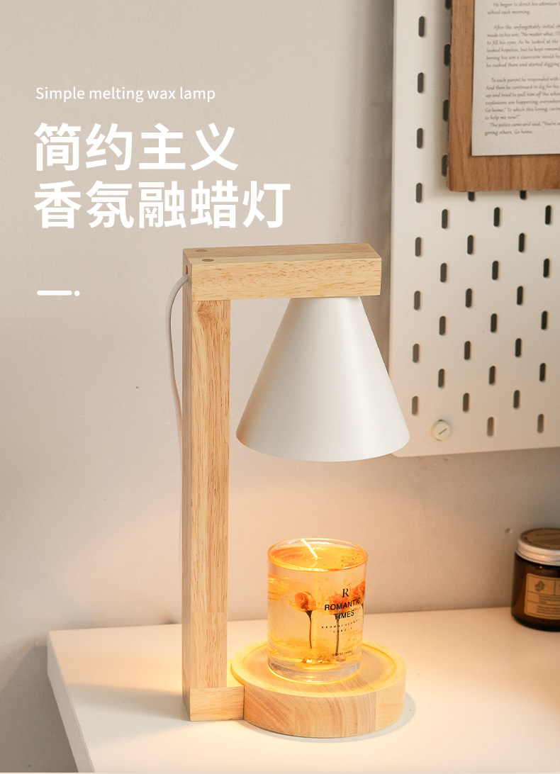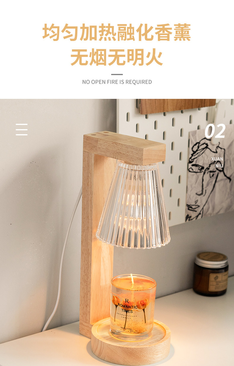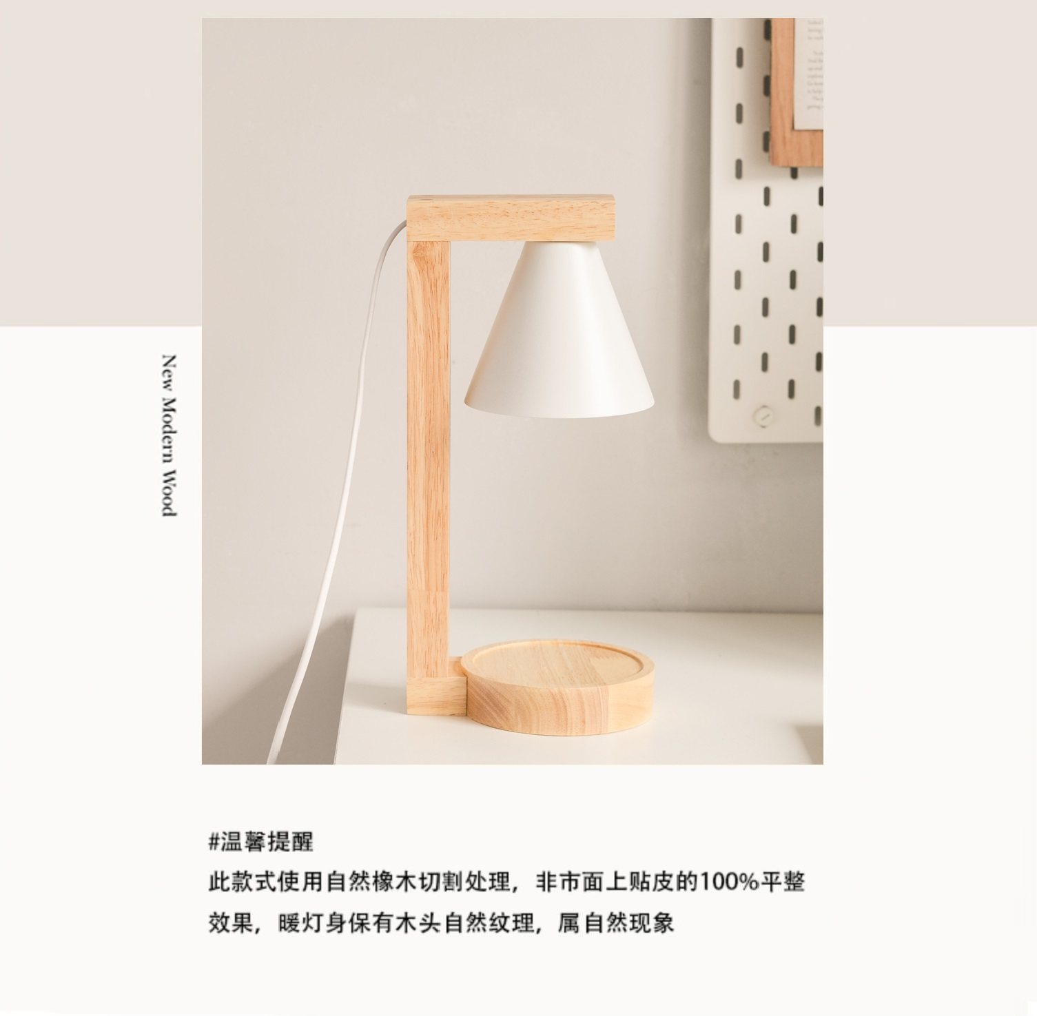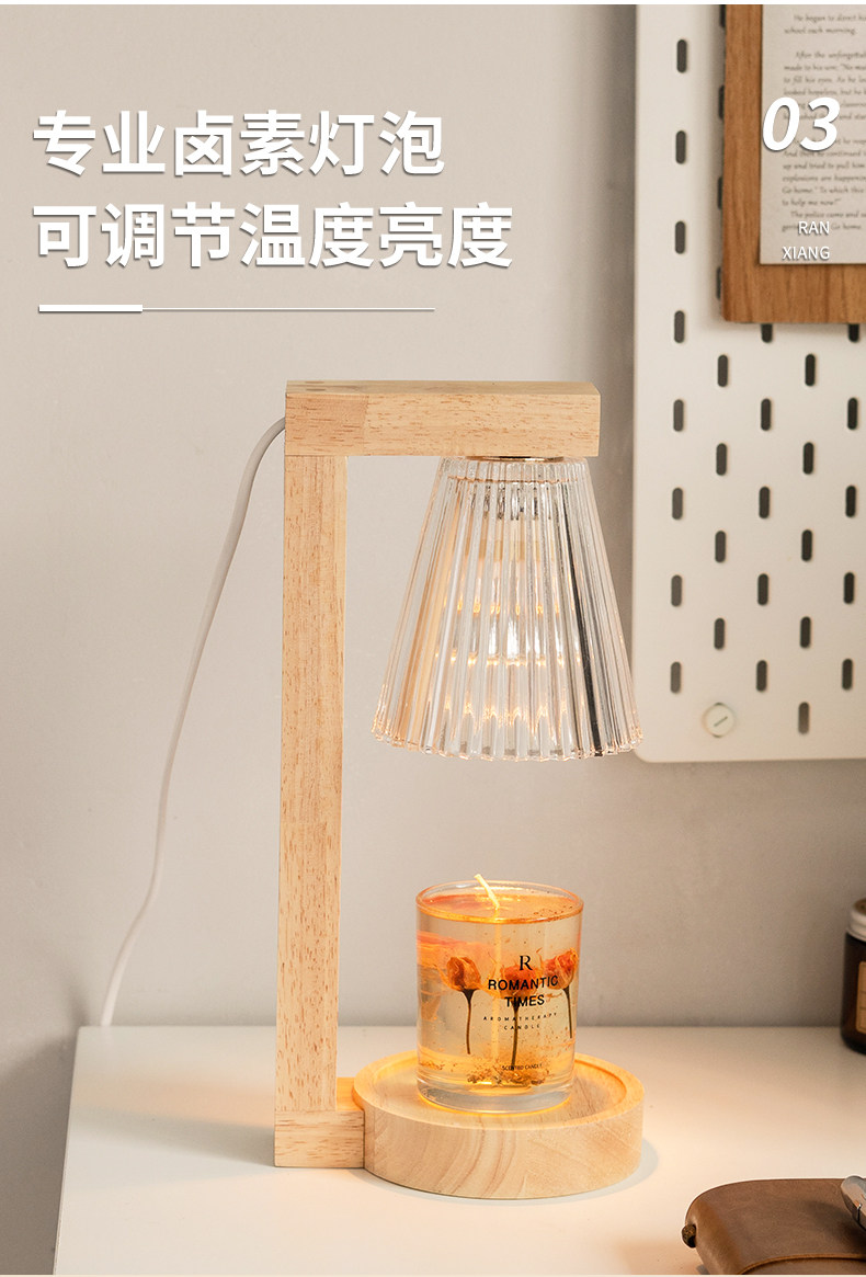 Japanese-Style Natural Wood Aromatherapy Wax Melting Lamp, Smokeless, Creative Bedroom Bedside Lamp, Romantic Candle, Dimmable, Trendy Retro