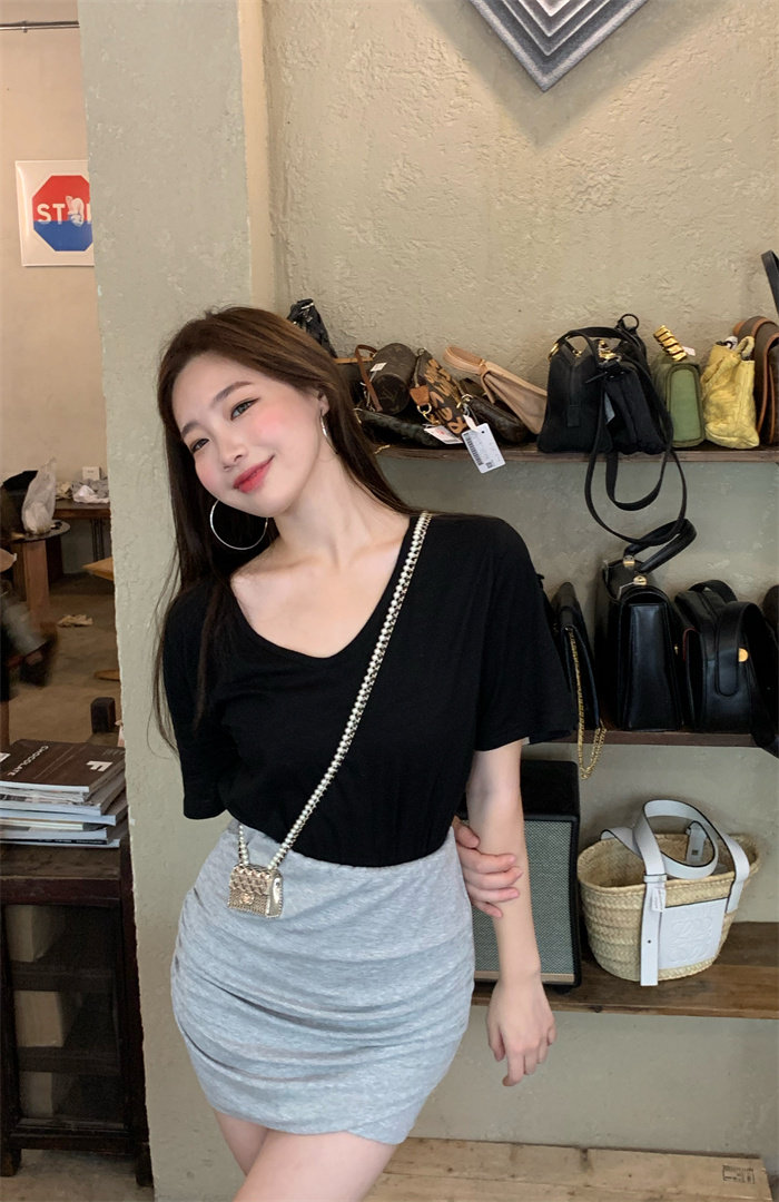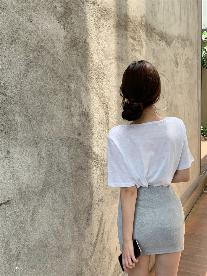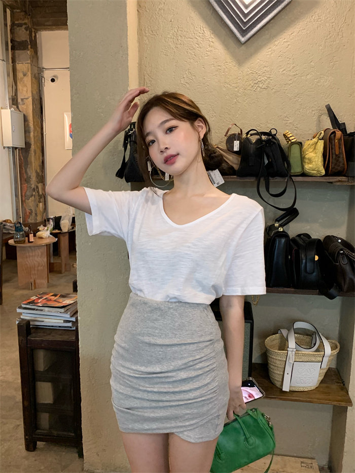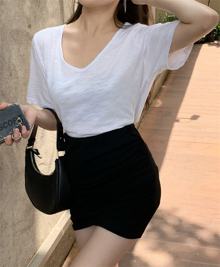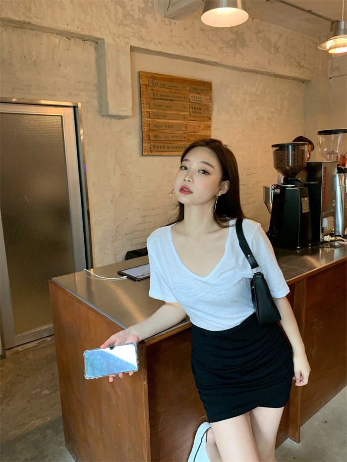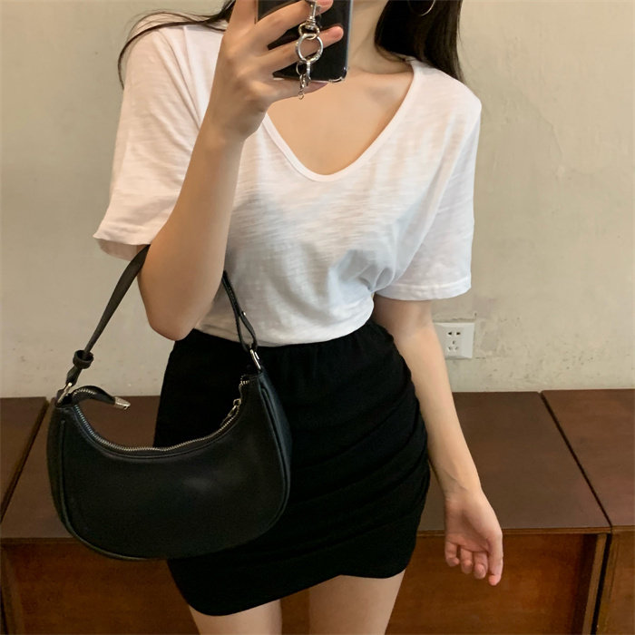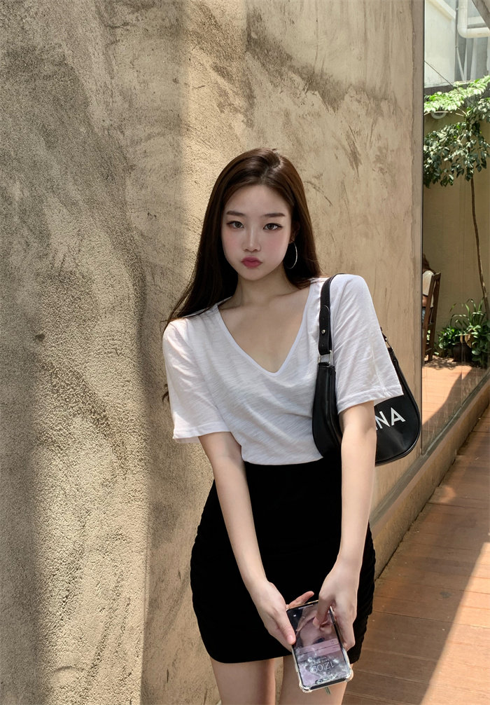 White Bamboo Cotton Short-Sleeve T-Shirt for Women, Summer 2025, Sexy V-Neck That Exposes Collarbones, Versatile Slim-Fit Top