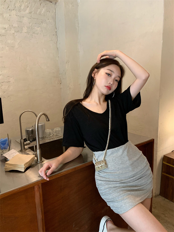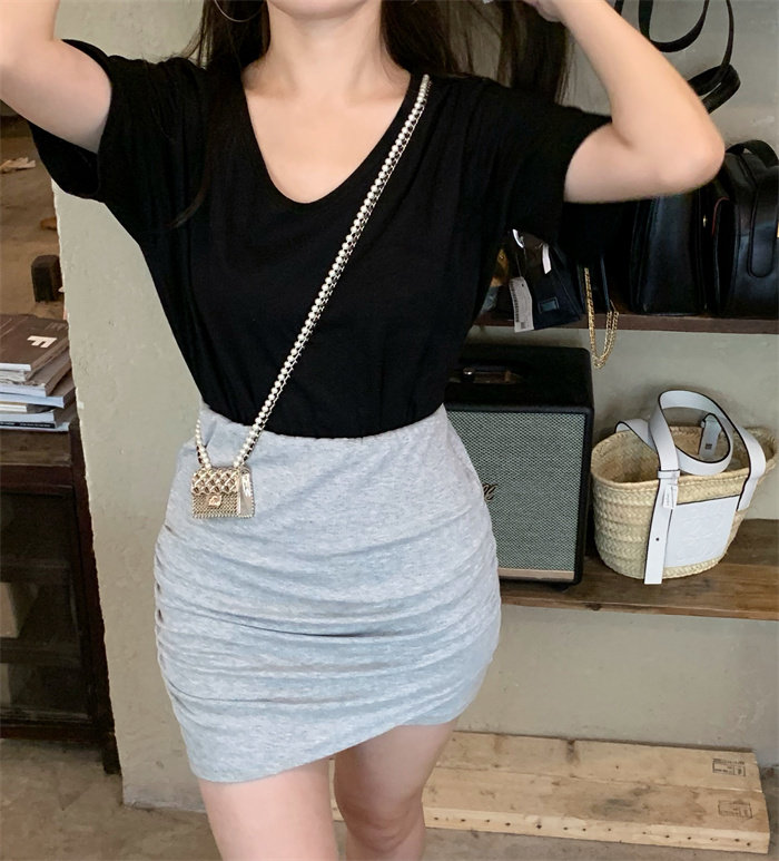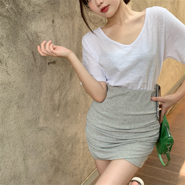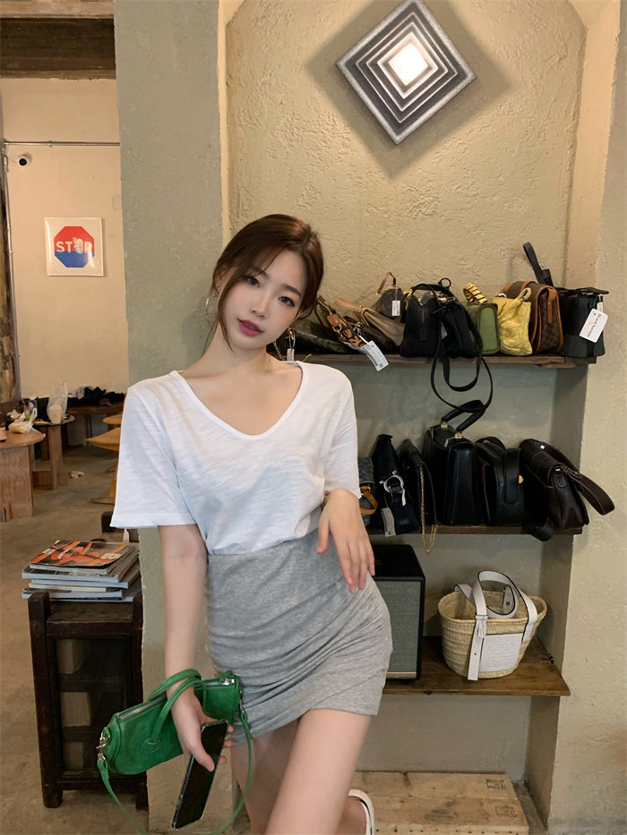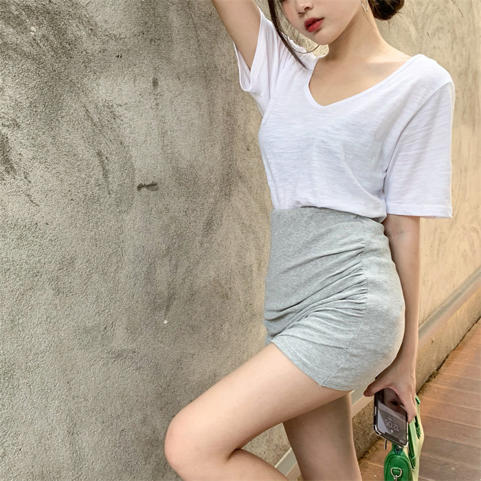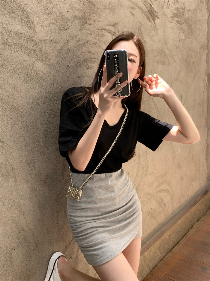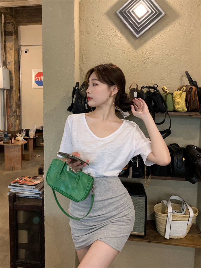 White Bamboo Cotton Short-Sleeve T-Shirt for Women, Summer 2025, Sexy V-Neck That Exposes Collarbones, Versatile Slim-Fit Top