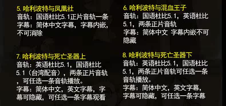 Authentic Harry Potter Movie Dvd Discs 1-7, Complete Bilingual Chinese and English Version, High-Definition English Collection