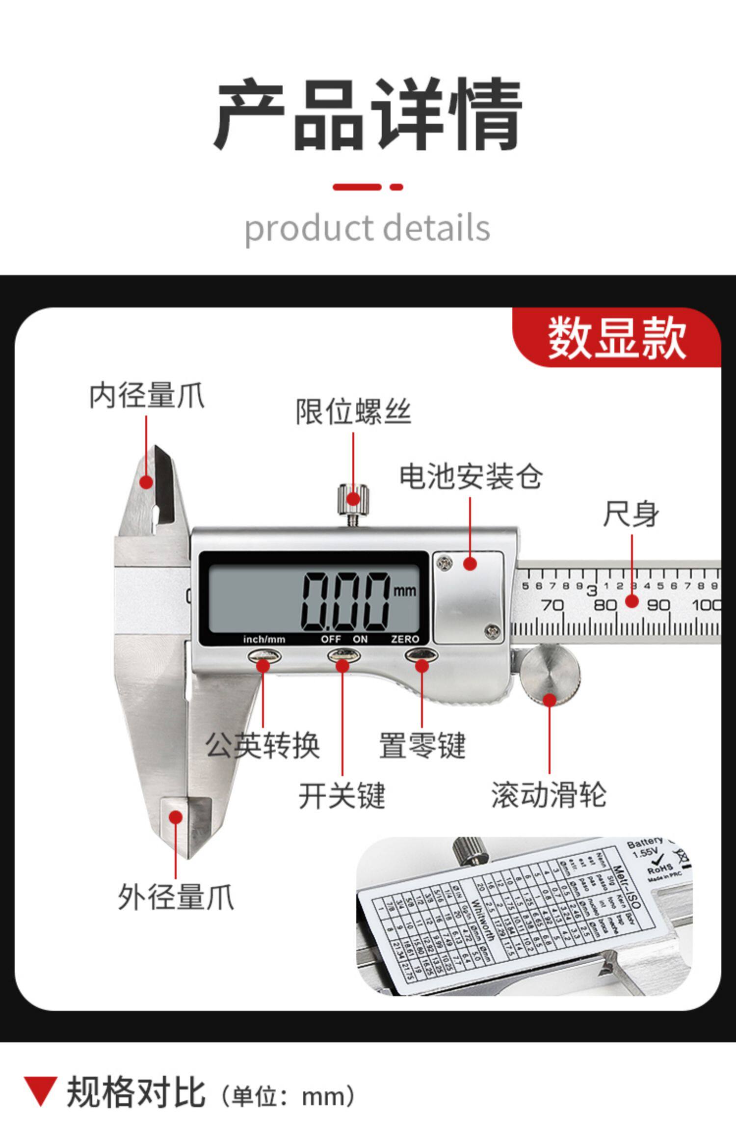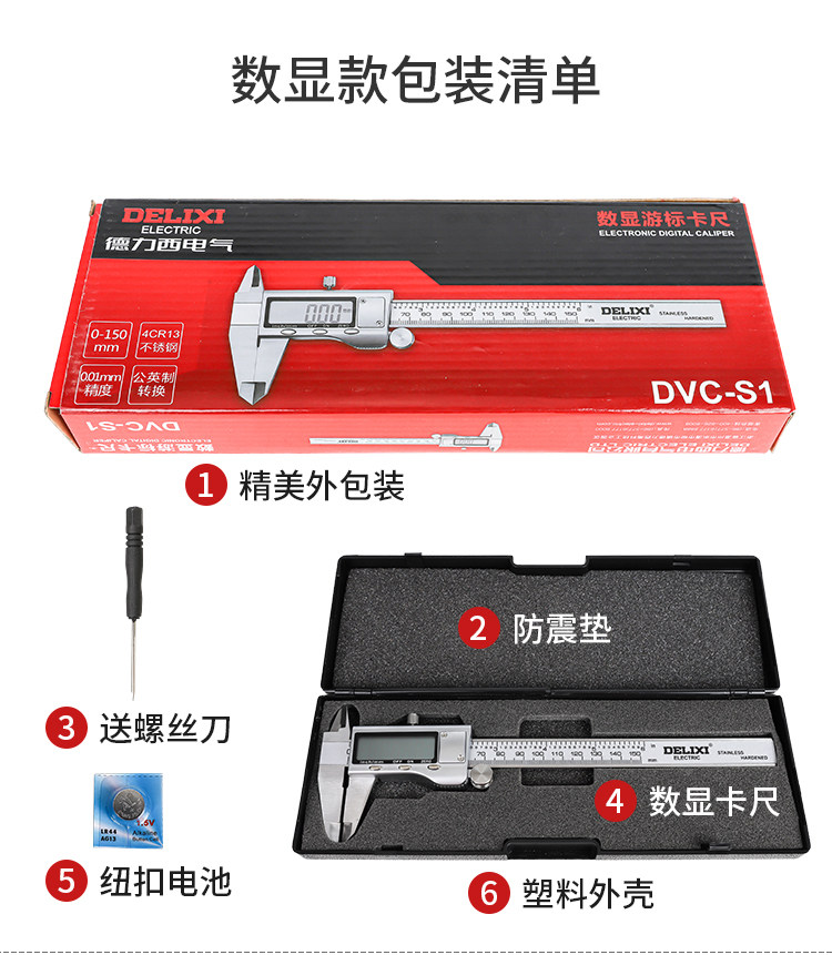 Delixi Vernier Caliper High-Precision Digital Display Industrial-Grade 0-150mm Household Precision Stainless Steel Caliper