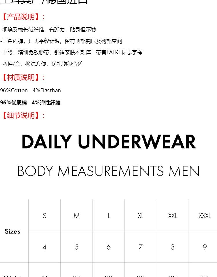 [2-Pack] German Imported Falke Pure Cotton Allergy-Free Soft Thin Sweat-Absorbent Breathable Men's Briefs