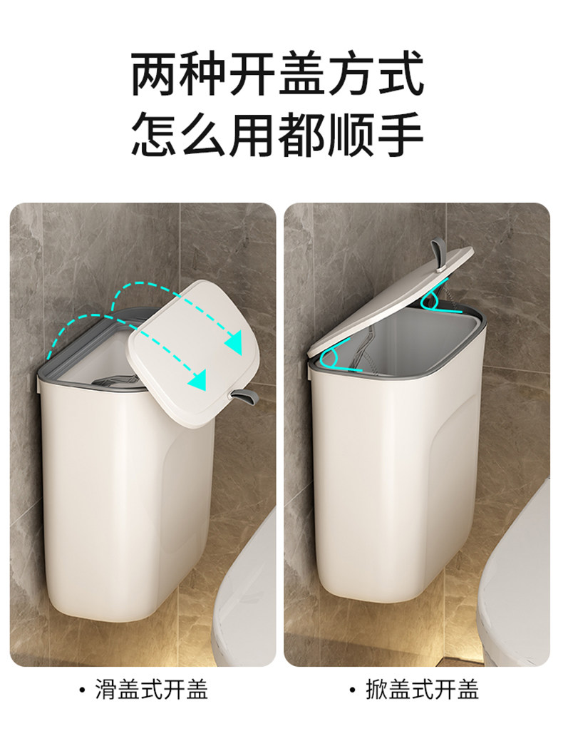 Bathroom Trash Can, Wall-Mounted with Lid for Narrow Spaces, Household Toilet Paper Storage Bin, Narrow Wastebasket, Creative Sanitary Bin