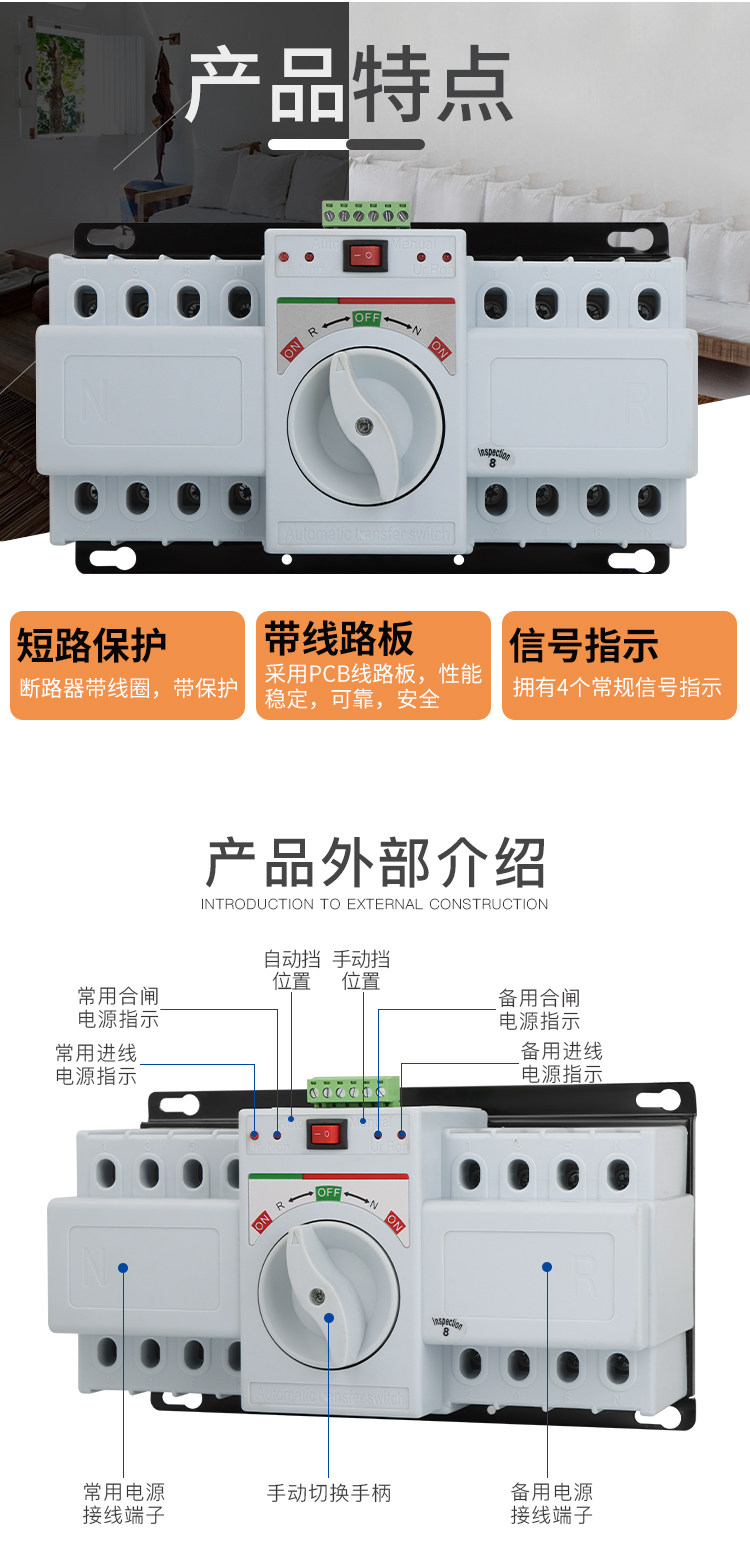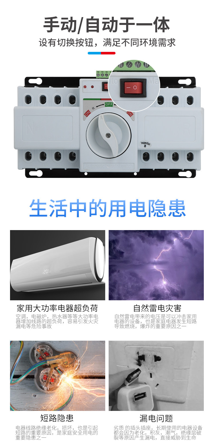 Dual Power Automatic Transfer Switch 4P380V63A80A100A125A Two-Way Power Switcher Three-Phase Four-Wire