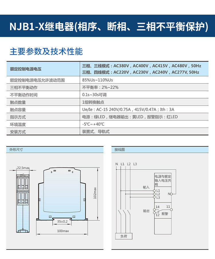 Chint Njb1-X1 Njb1-X Phase Sequence and Phase Disconnection Protection Relay Phase Sequence Disconnection Relay Phase Sequence Protection