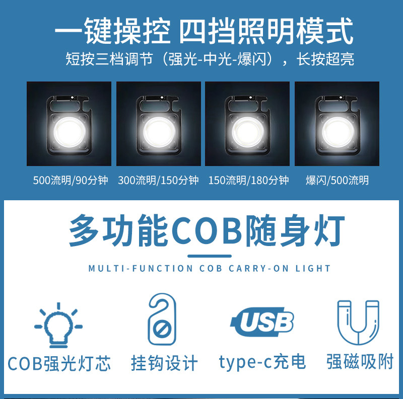 Multifunctional Keychain Light, Small Mini Portable Light with Magnet, Auto Repair Work Light, Ultra-Bright Waterproof Flashlight