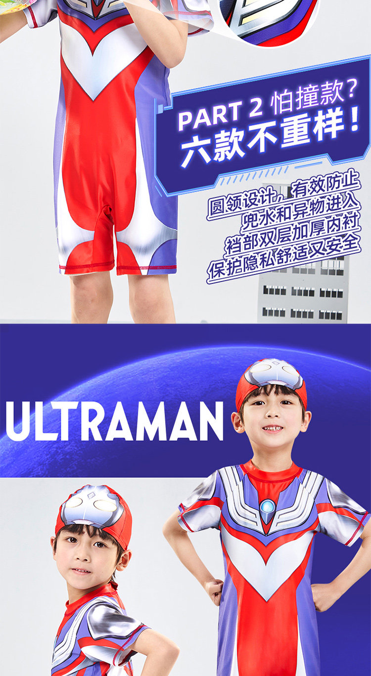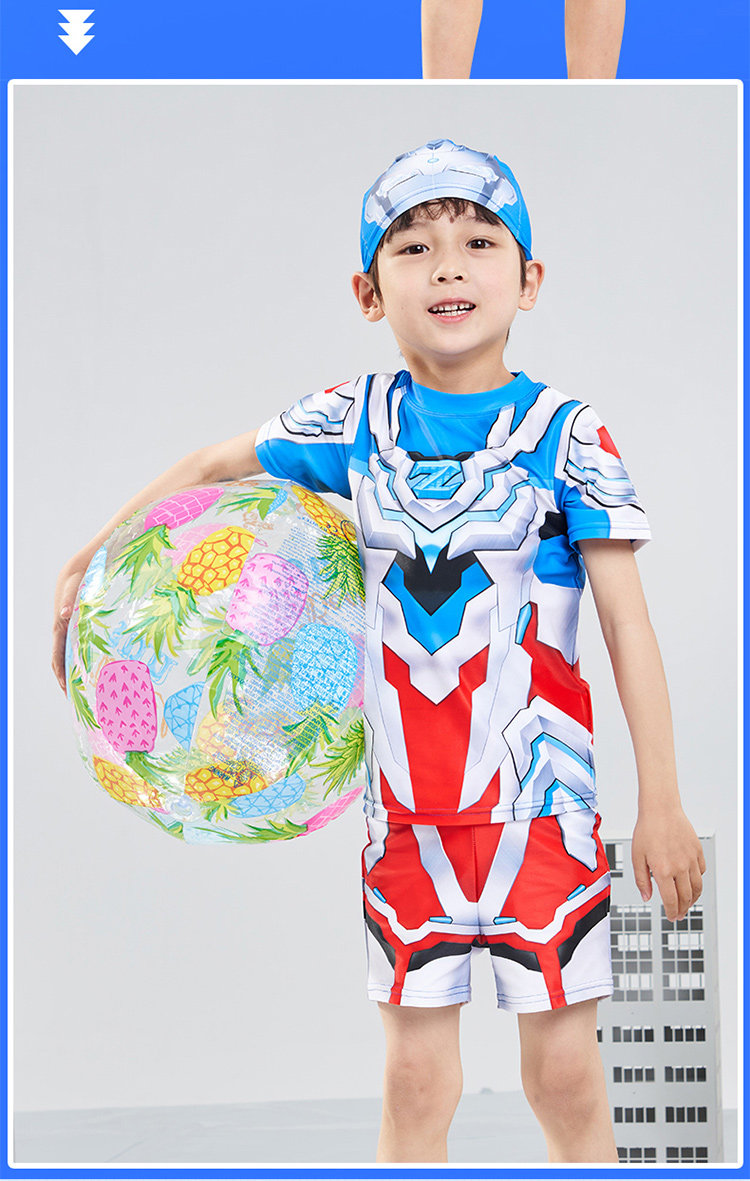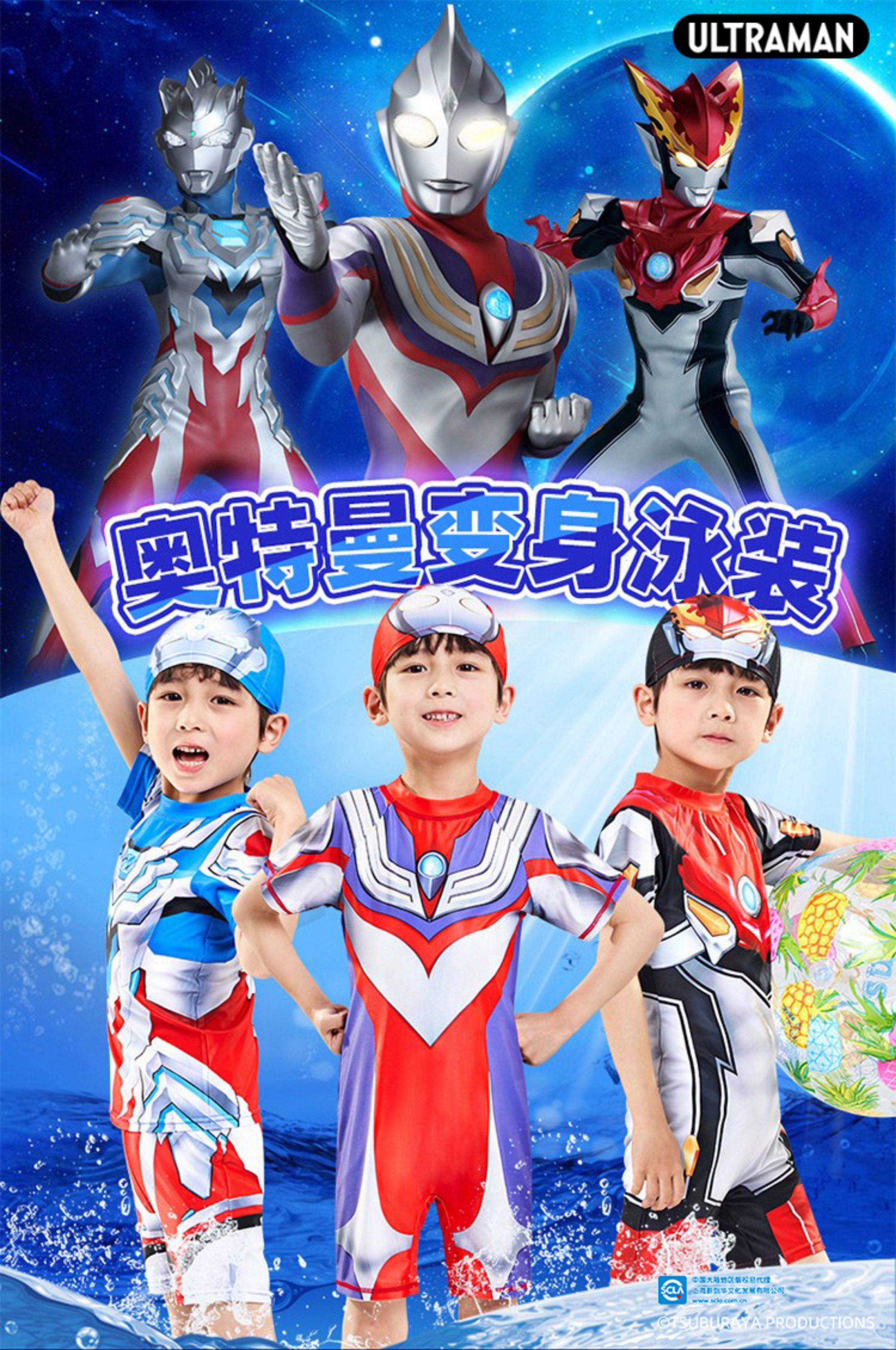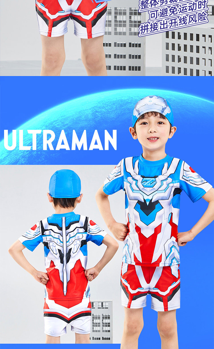 [Authentic] Ultraman Swimsuit for Boys, Two-Piece and One-Piece Swimsuit, Quick-Drying, Sun-Protective, Professional Children's Swimwear