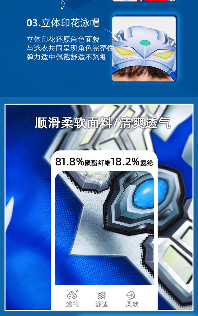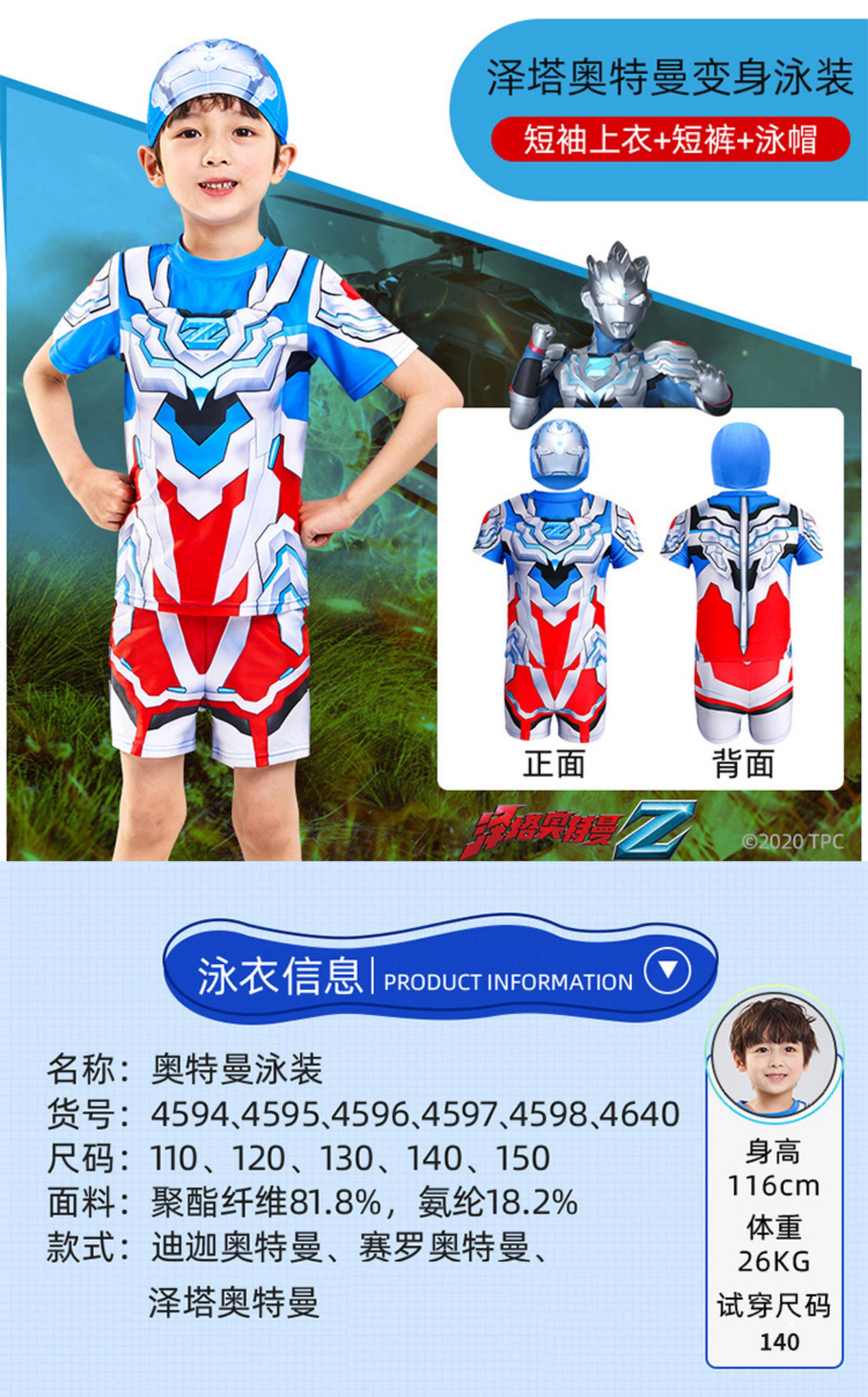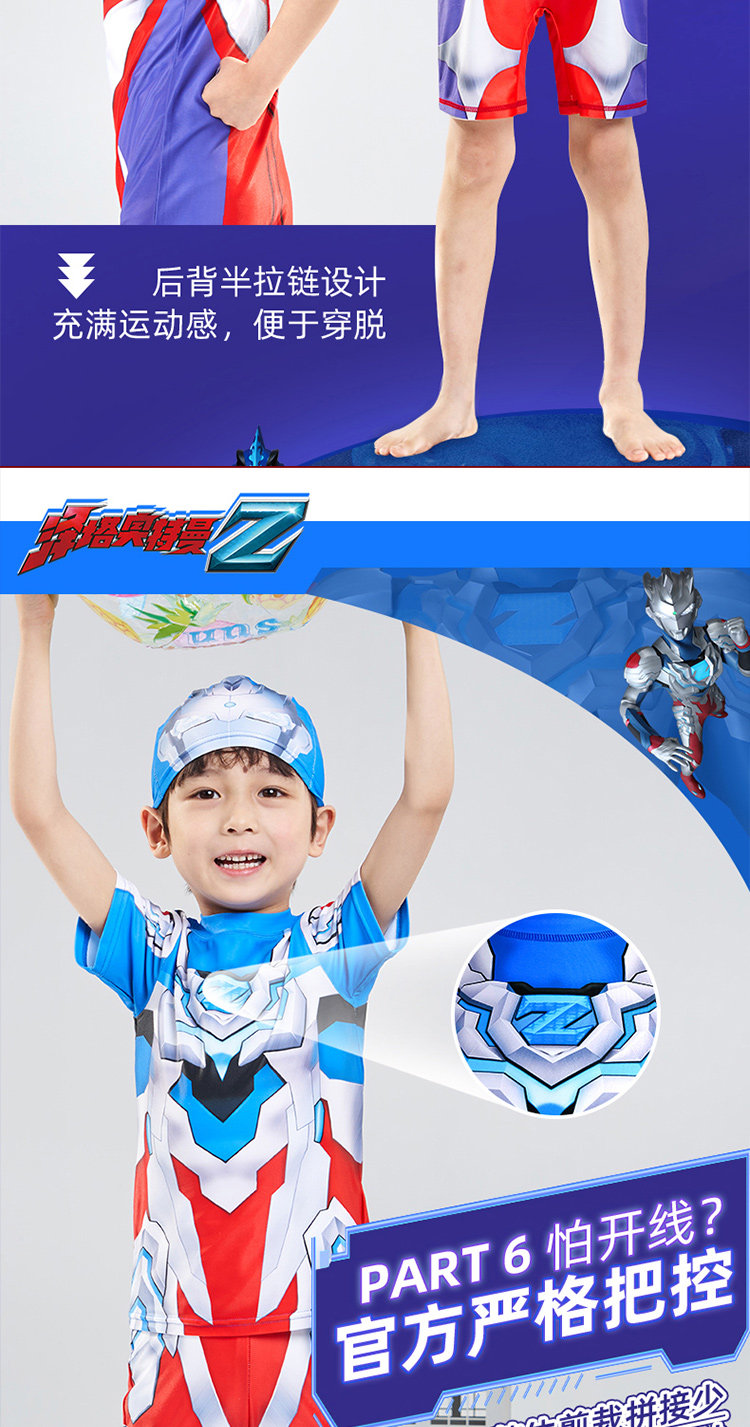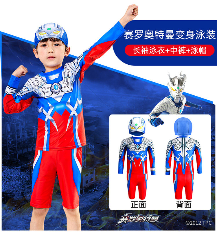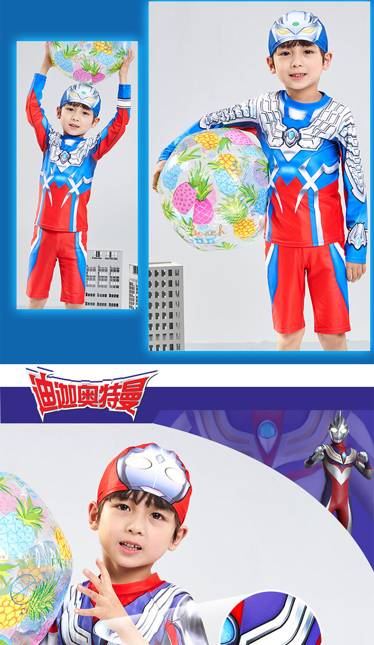 [Authentic] Ultraman Swimsuit for Boys, Two-Piece and One-Piece Swimsuit, Quick-Drying, Sun-Protective, Professional Children's Swimwear