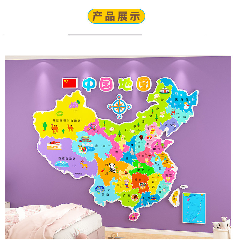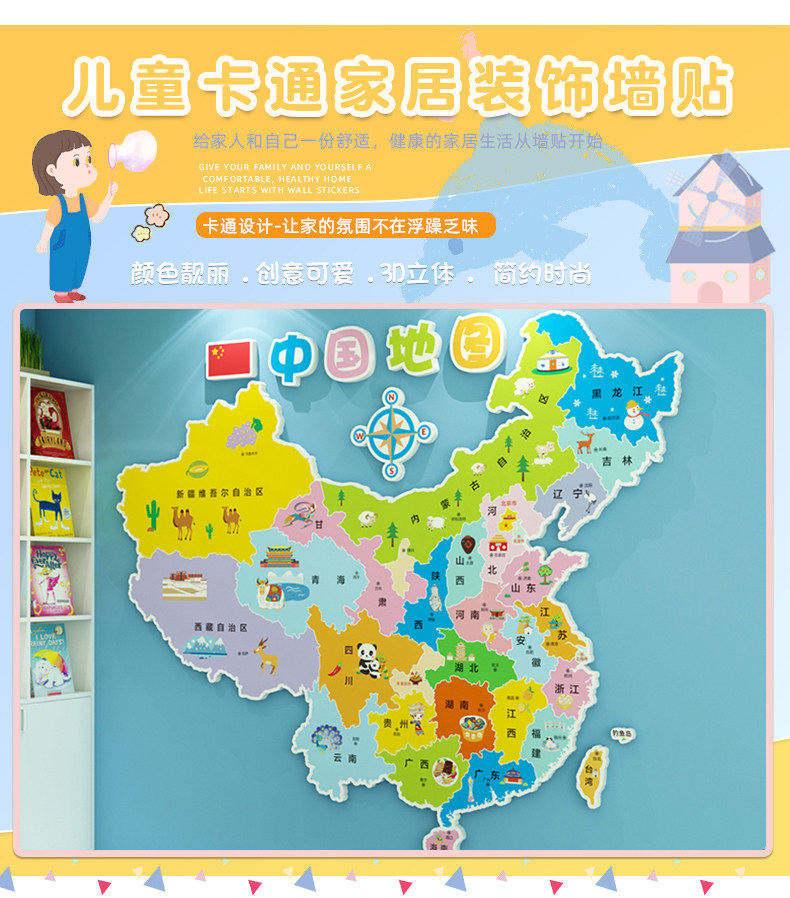 China Map Wall Sticker World Map Wall Decoration Painting Living Room Dining Room Children's Room Layout Background Wall 3D Stereo