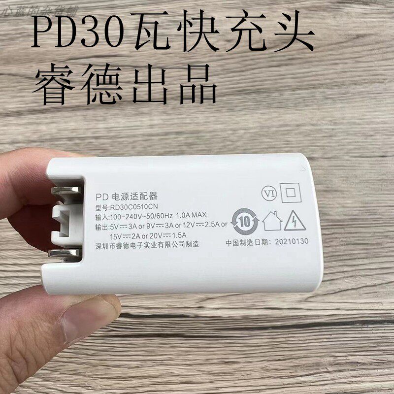 Ruide 30-Watt Pd Fast Charger Is Suitable for Apple 8 X Xr11 12 13Pm iPad Tablets