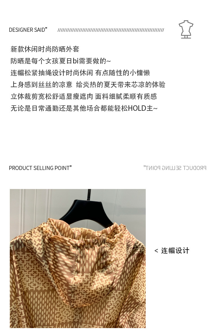 Large Size Short Jacket, Thin Summer Floral Breathable Loose Drawstring European Style Cool Hooded Sun Protection Clothing for Women 2023 New Style