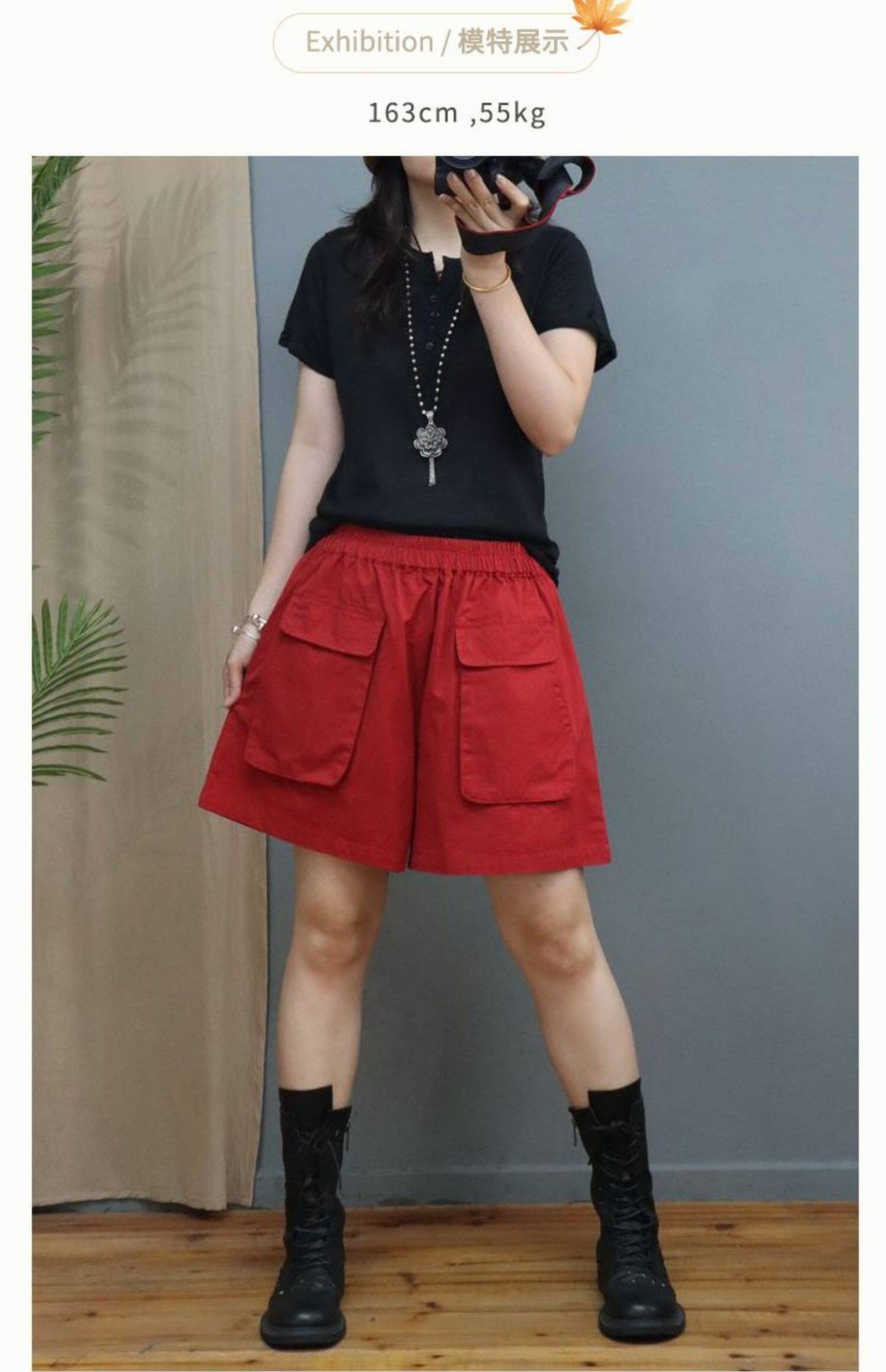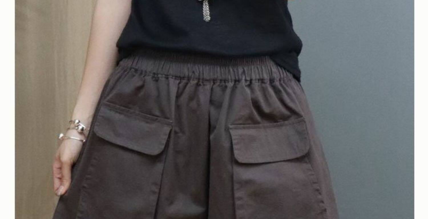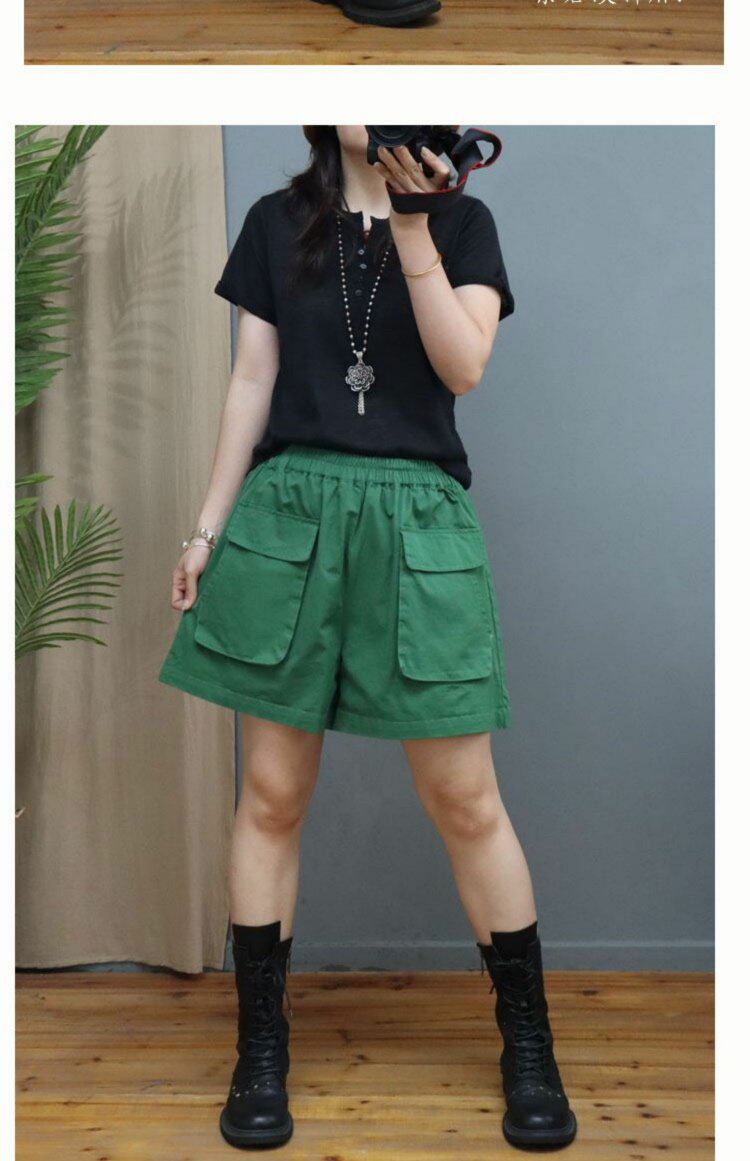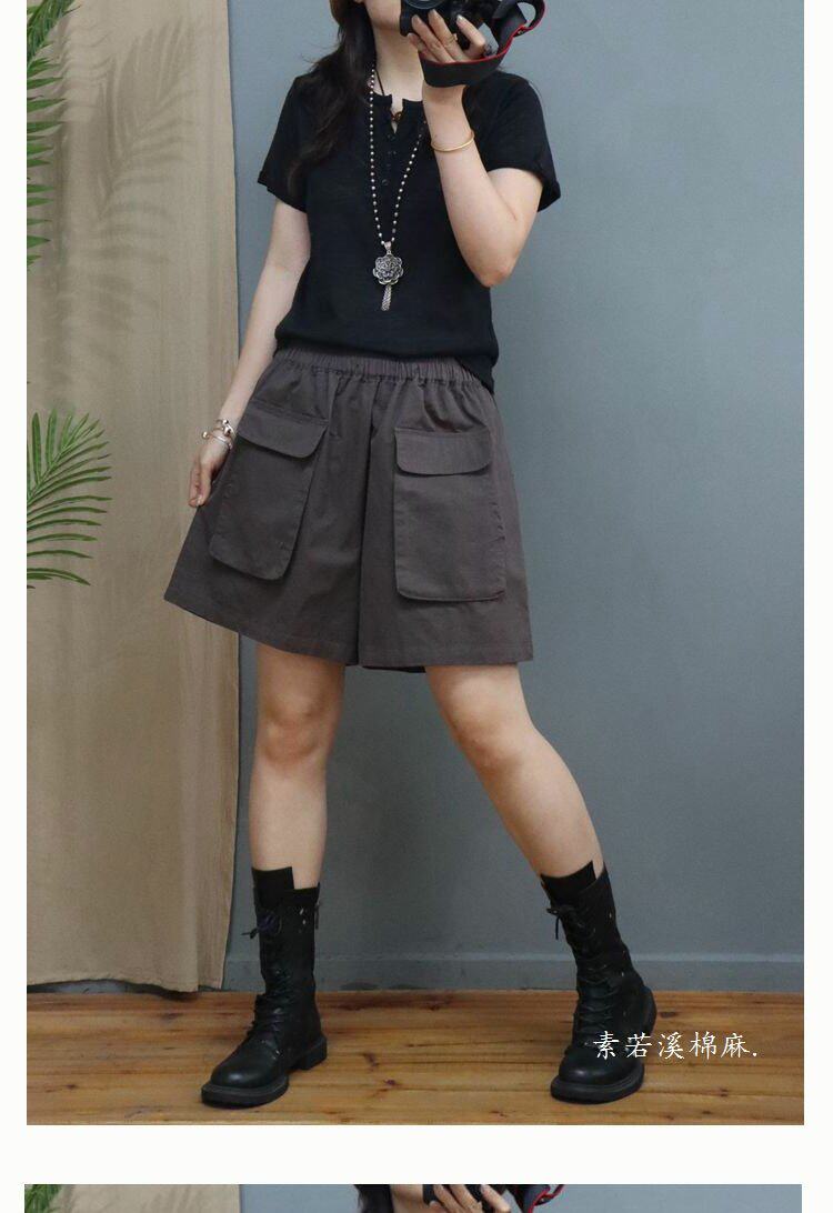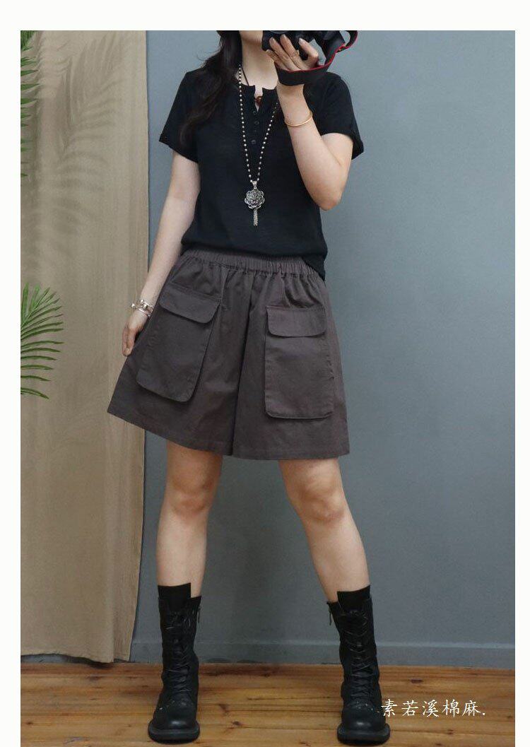 Big Sale Special Price Korean Style Fashionable Casual Wide-Leg Shorts Women's A-Line Loose Slimming Look Large Flap Pocket Pants Pure Color Versatile Hot Pants