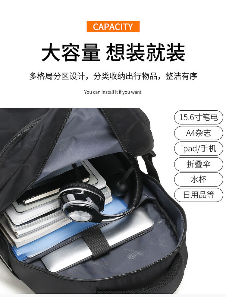 Internal Structure Mesh Bag,Cell Phone Bag,Certificate Slot,Laminated Zipper Bag,Computer Pocket,Camera Pocket,Main Bag
