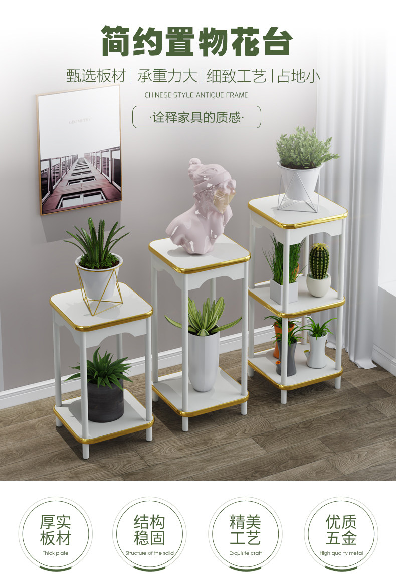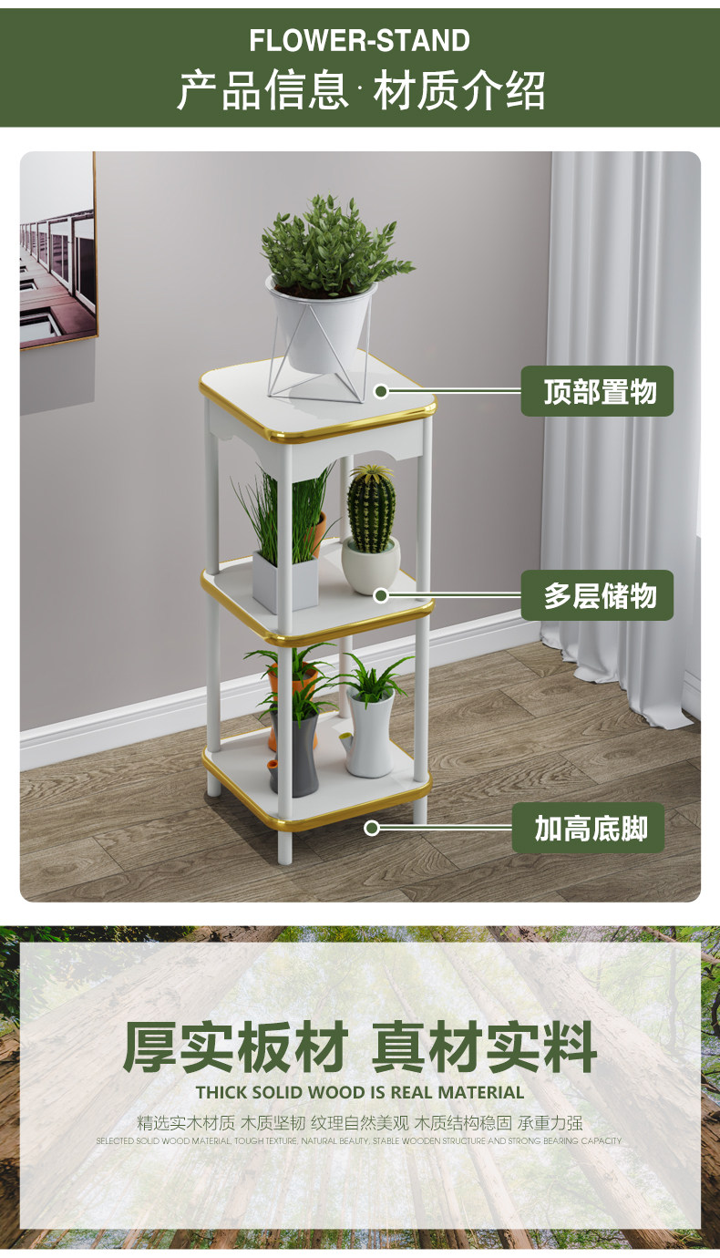 White Flower Stand for Living Room, Floor-Standing Nordic Balcony Plant Display Rack, Solid Wood Succulent Stand for Home Use